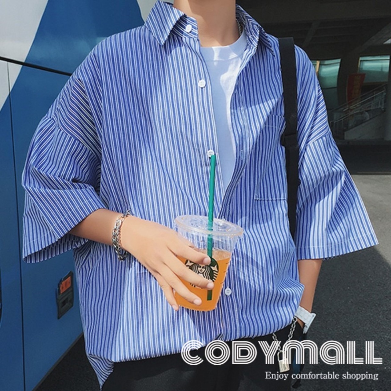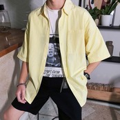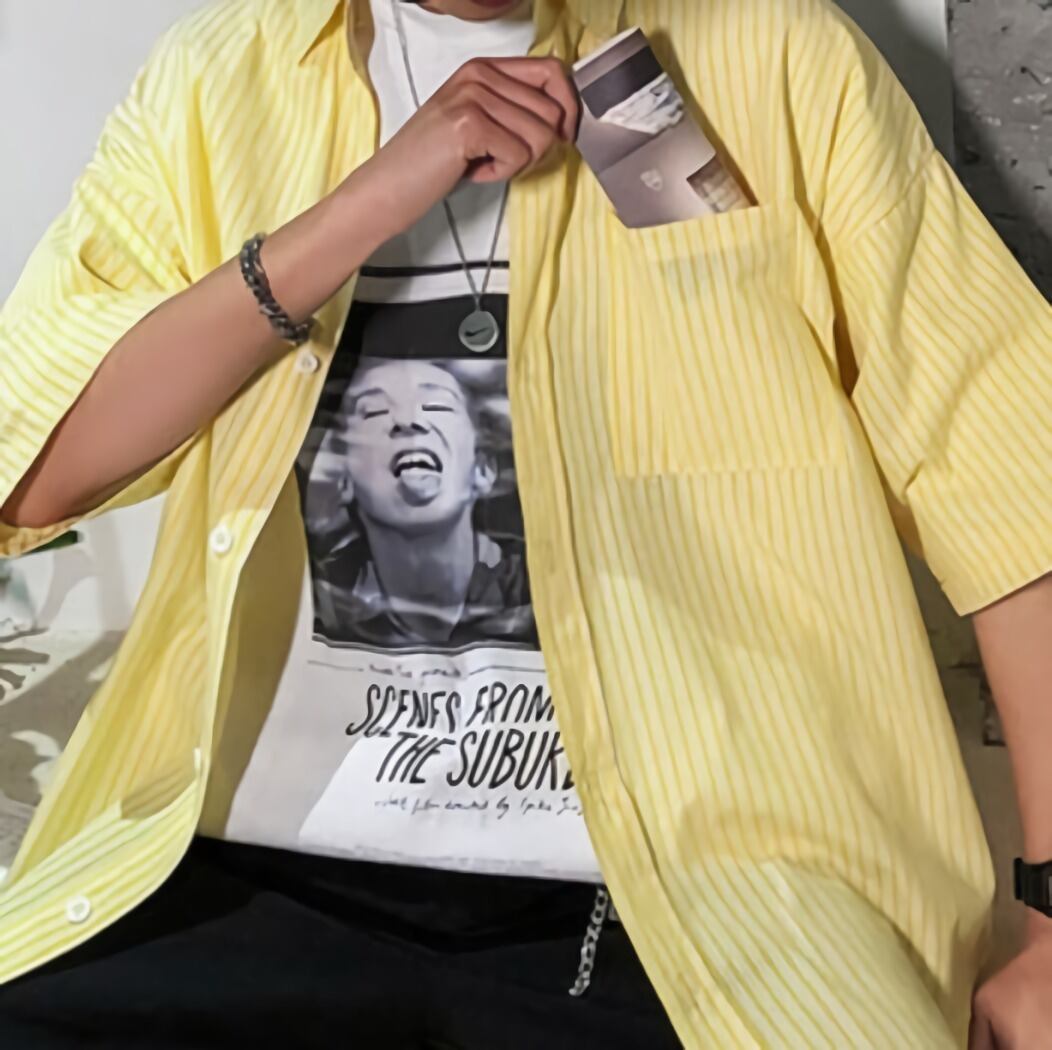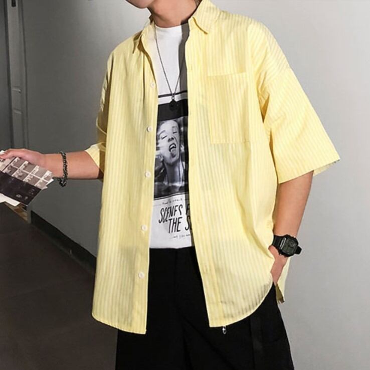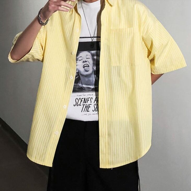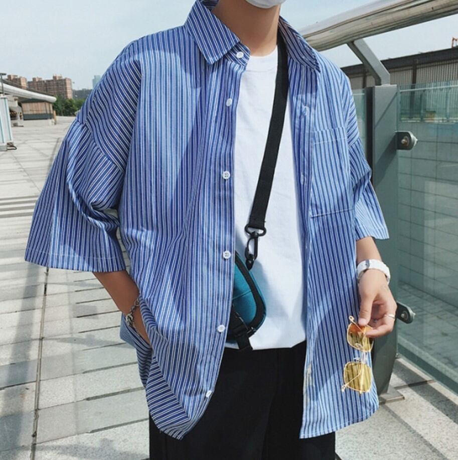 メンズ ストライプ シャツ 半袖 柄シャツ 韓国 [gg-0964]