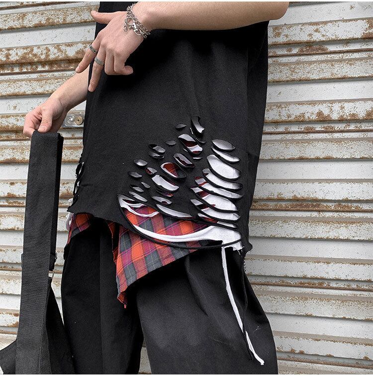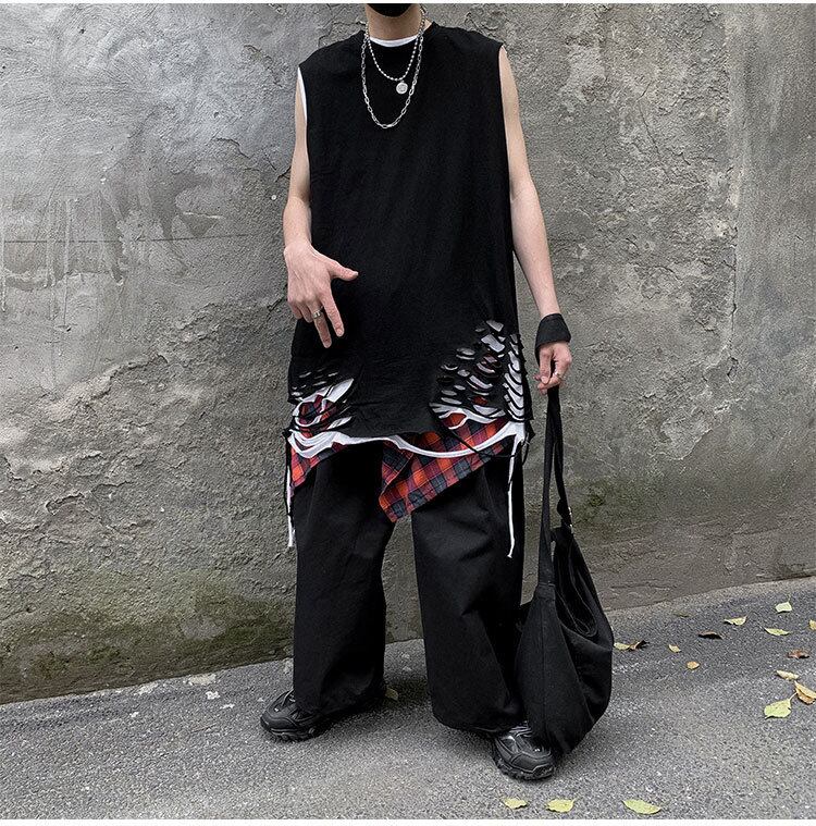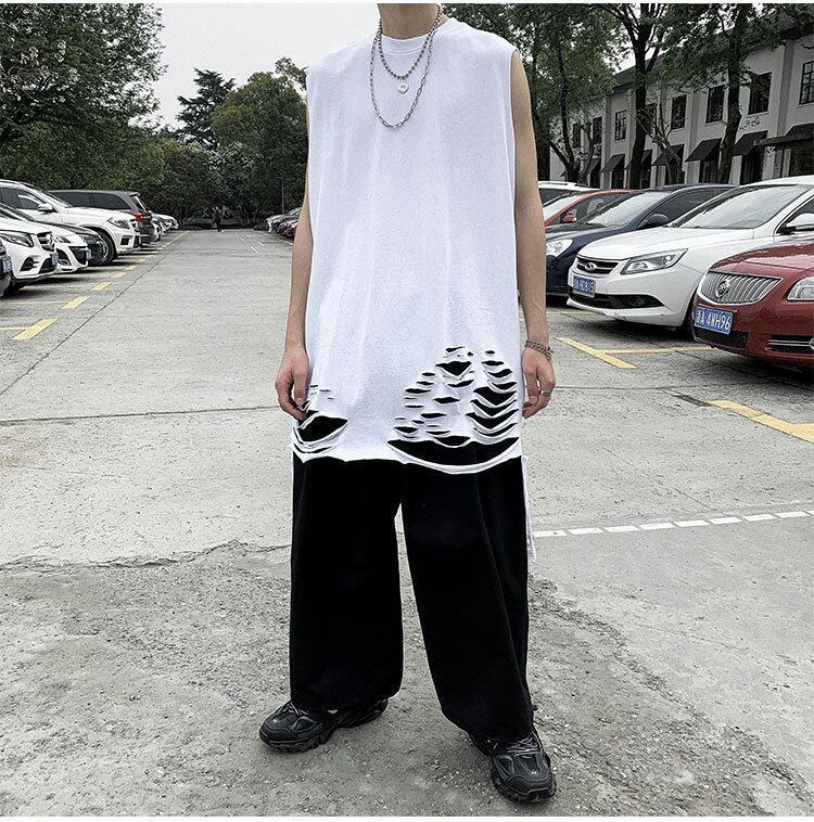 ノースリーブ タンクトップ ダメージ ストリート シャツ [gg-0968]