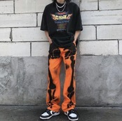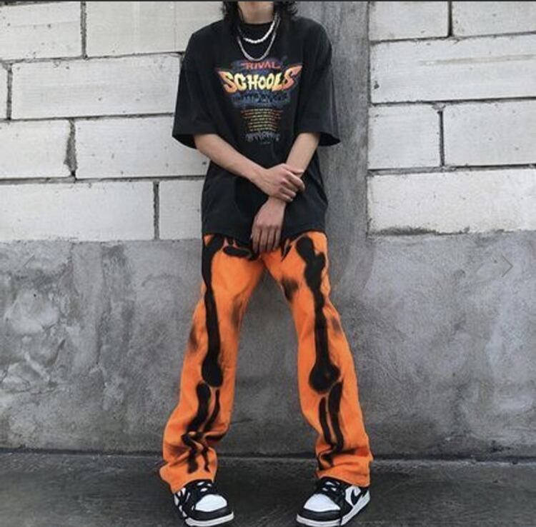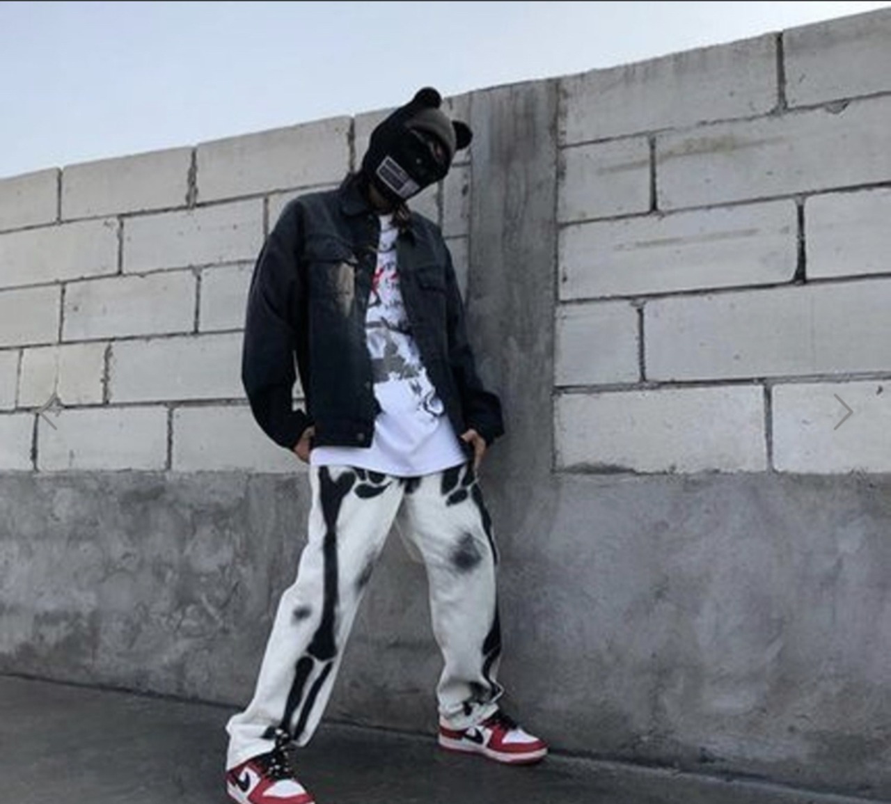 ワイドパンツ ストリート 骨柄 カジュアル ダメージ 加工 韓国 [gg-0978]