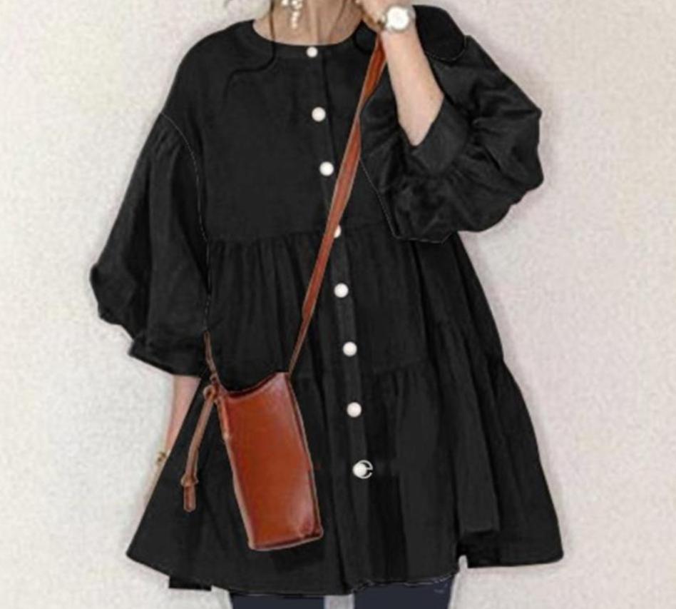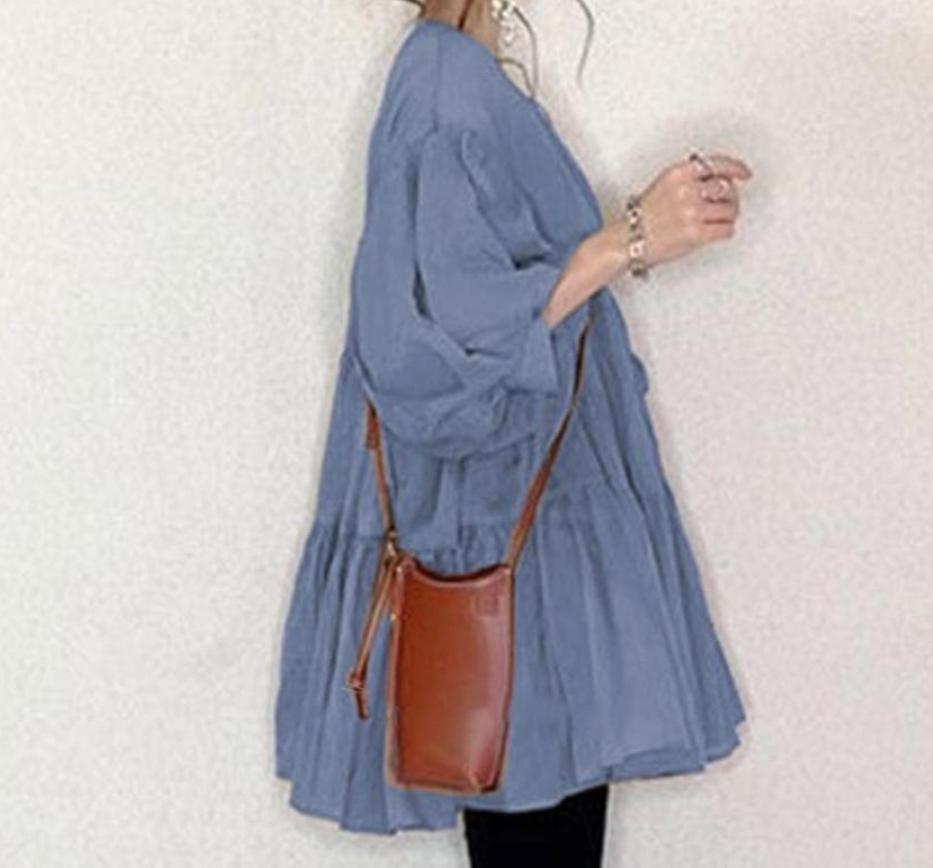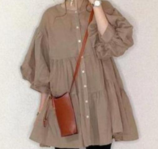 ティアード フリル ブラウス トップス 韓国 7分袖 フレア 丈長 [gg-1003]