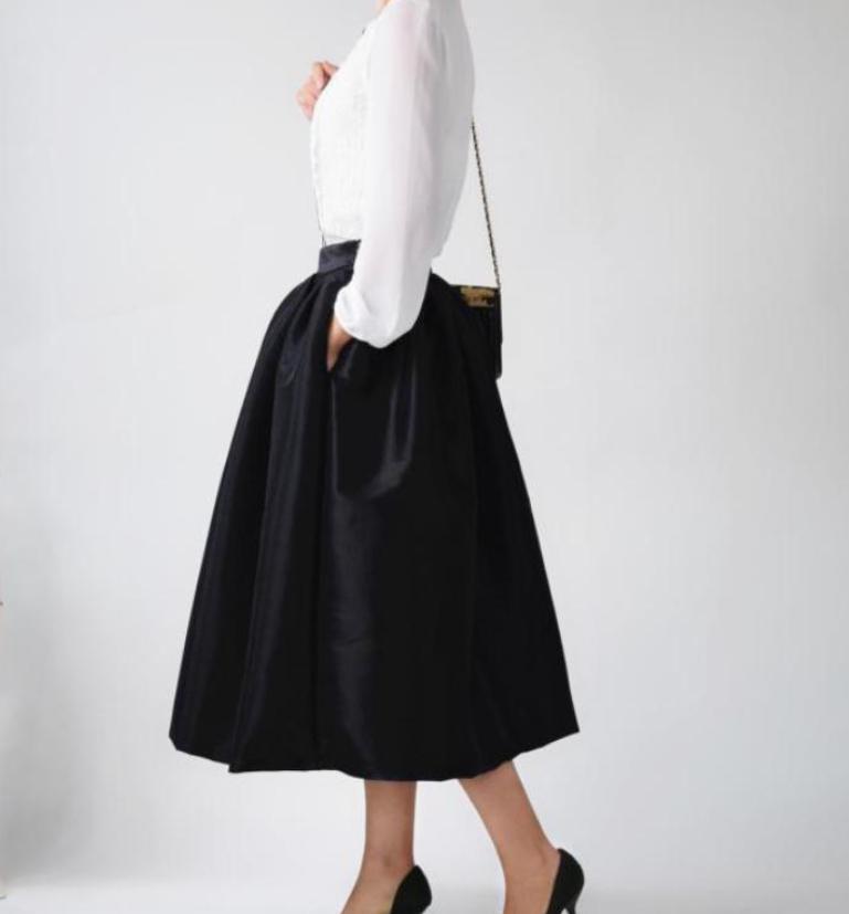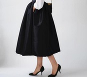 上品 フレア スカート Aライン ミモレ丈 韓国 シャンタン 張り感 [gg-1005]