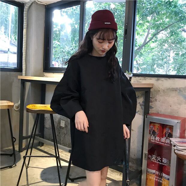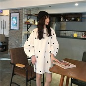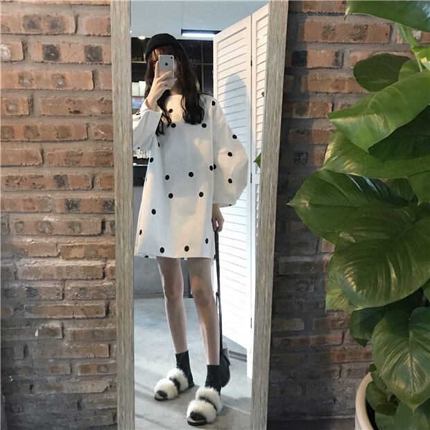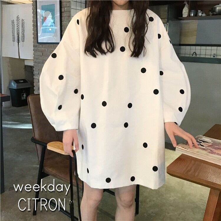 ドット柄 ルーズ チュニック ボリューム袖 韓国 [gg-1011]