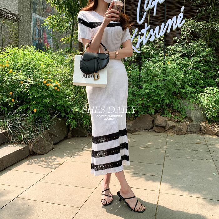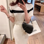 半袖 バイカラー ニット スカート セット [gg-1017]