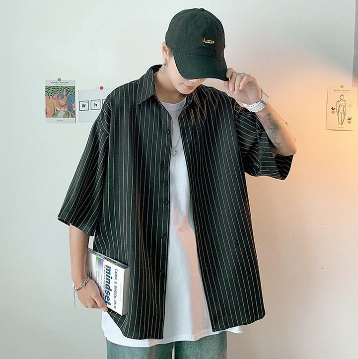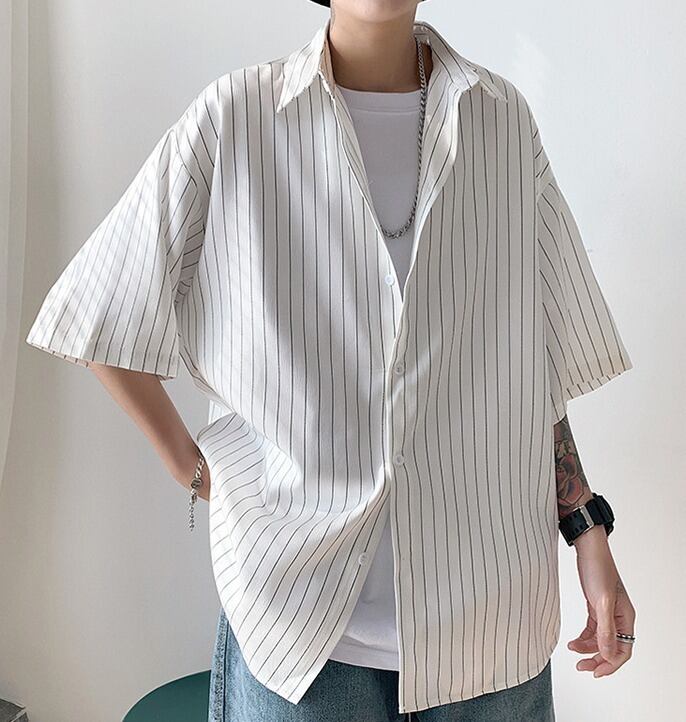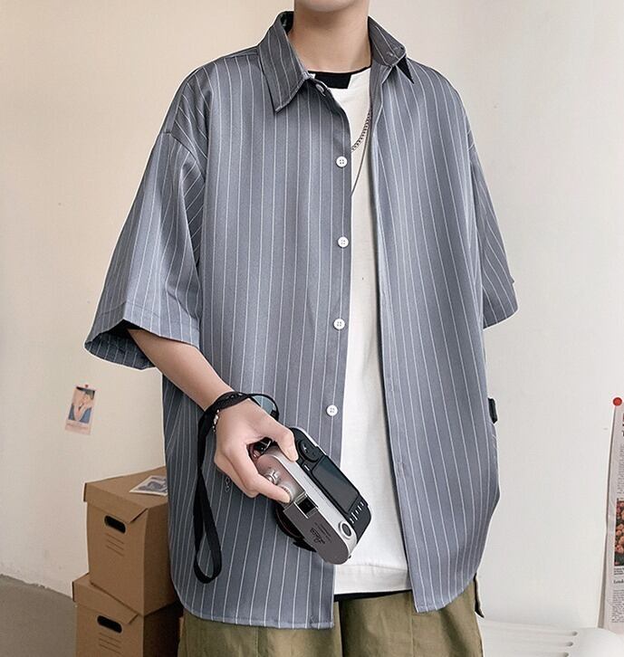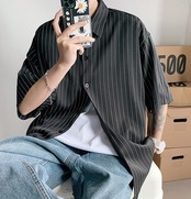 メンズ オープンカラーシャツ 半袖シャツ ストライプ [gg-1031]