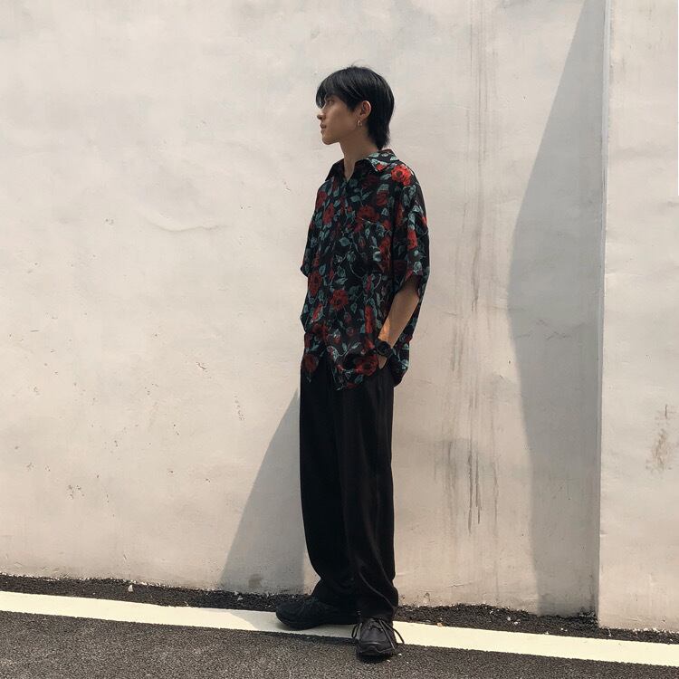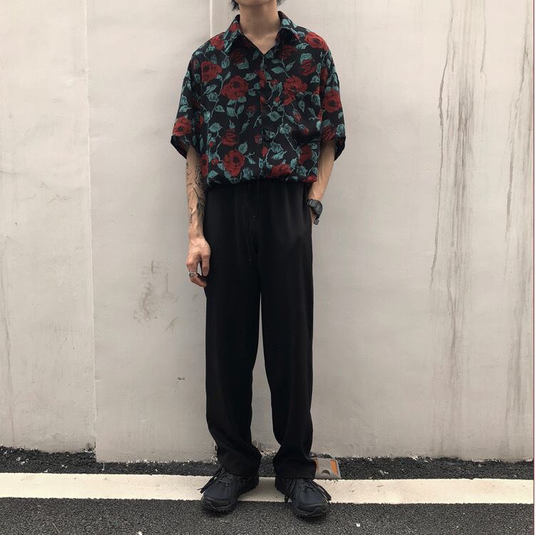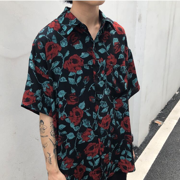 オープンカラーシャツ 薔薇 花 メンズ 総柄 [gg-1038]