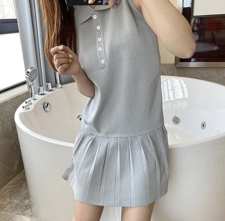 ワンピース ノースリーブ プリーツ スカート 韓国 [gg-1053]