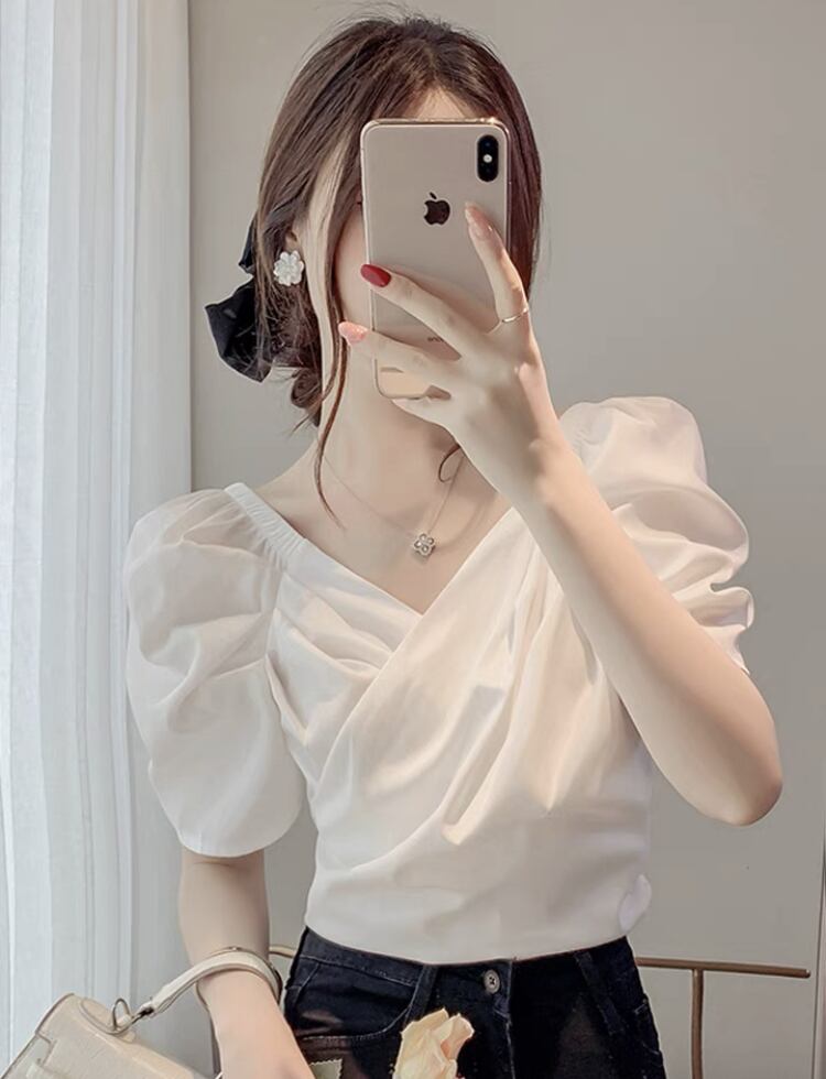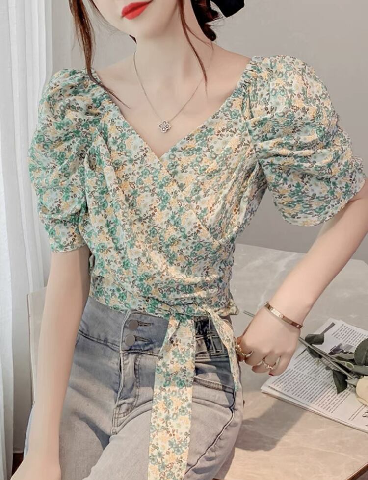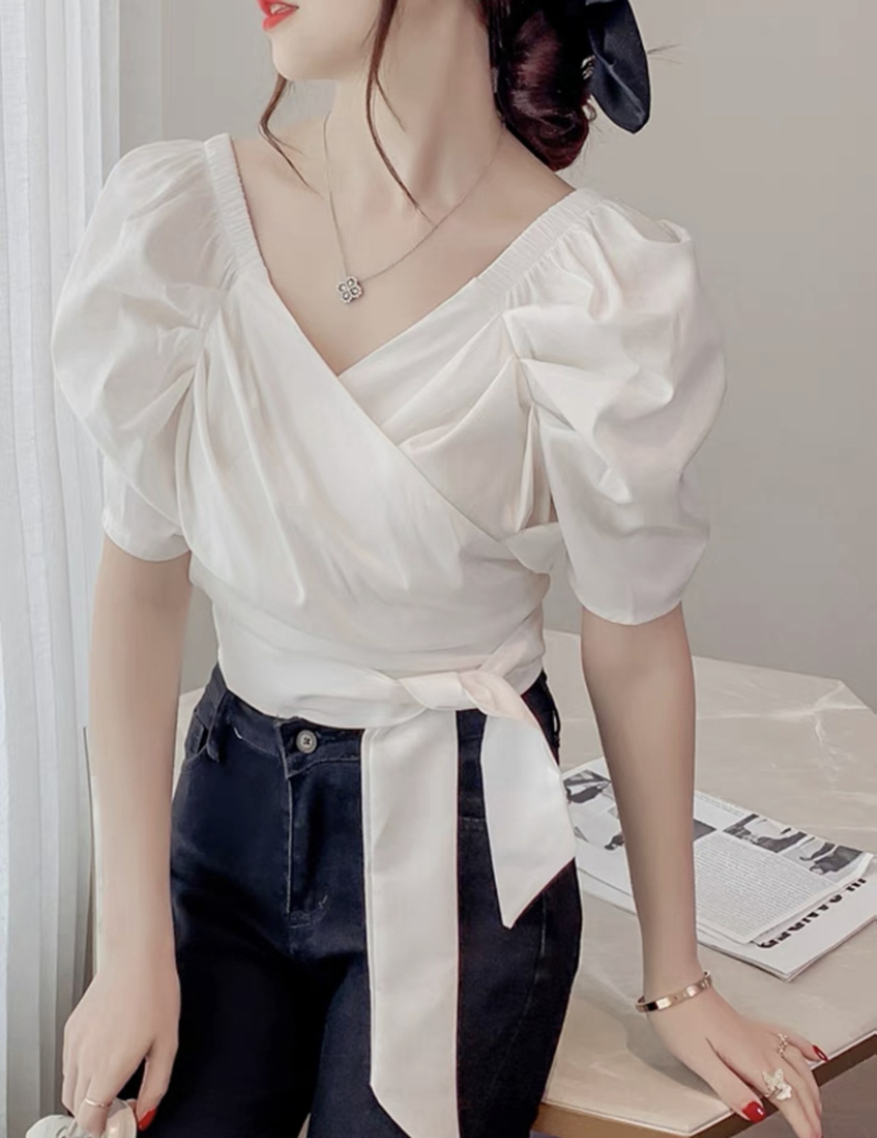 トップス ブラウス シャツ リボン カシュクール 韓国 [gg-1054]