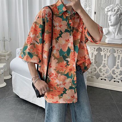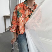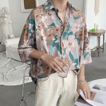 シャツ メンズ 花柄 ルーズシルエット 個性的 [gg-1066]