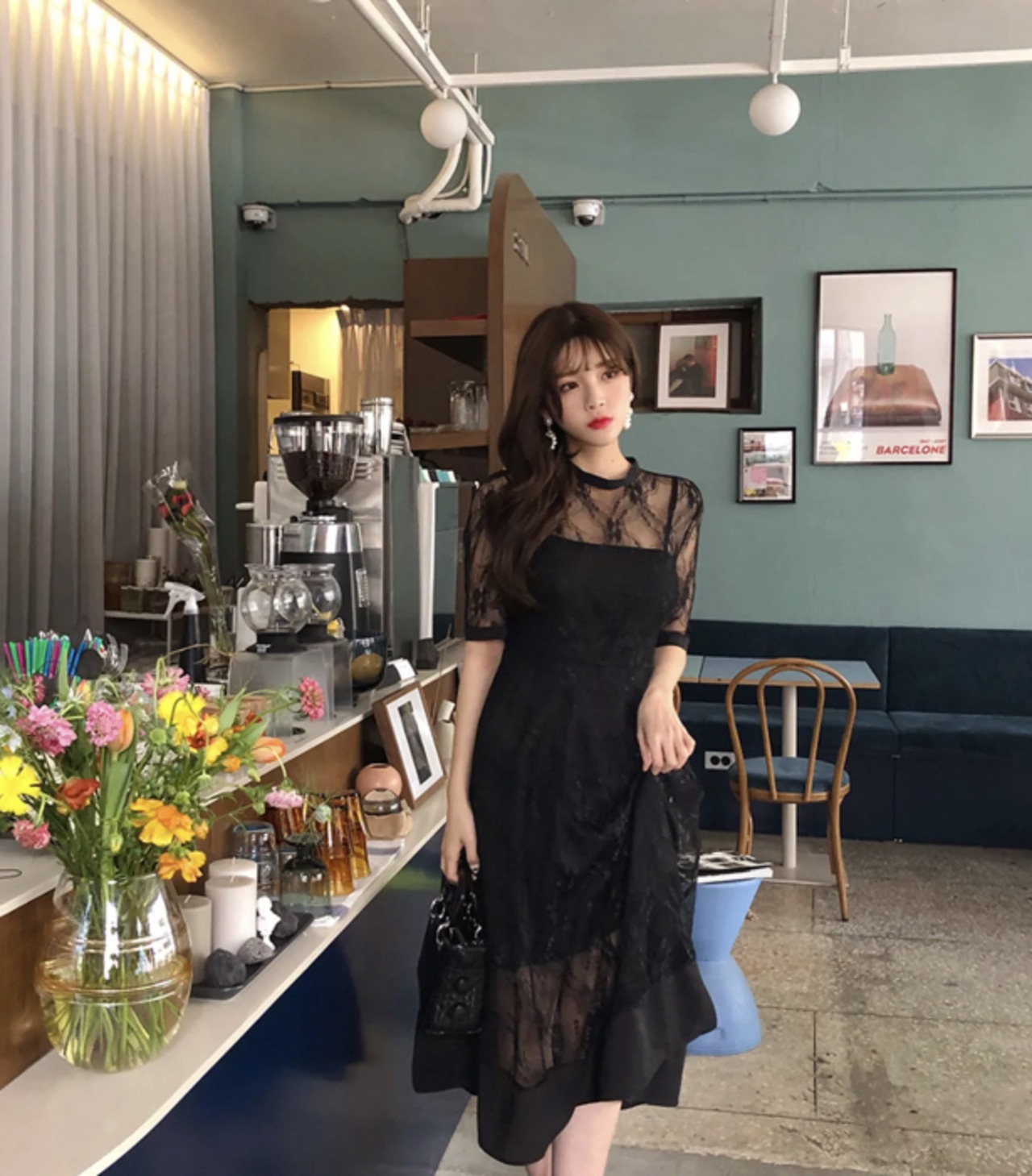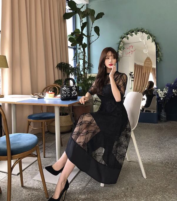 パーティードレス ワンピース レース シースルー 韓国 [gg-1068]