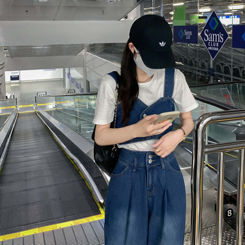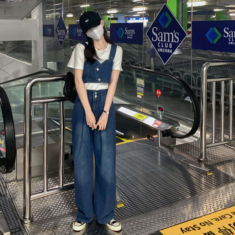 セットアップ デニム ワイドパンツ ベスト 上下2点 韓国系 [gg-1071]