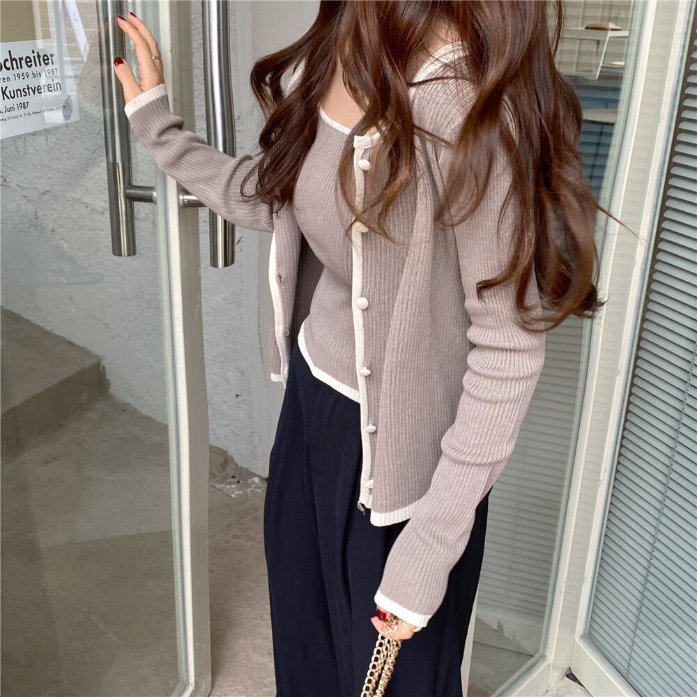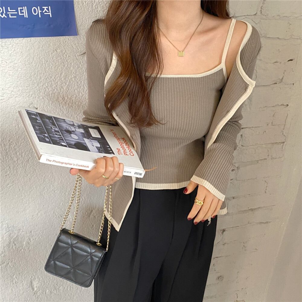 サマーニット キャミ × カーディガン アンサンブル 韓国系 [gg-1072]