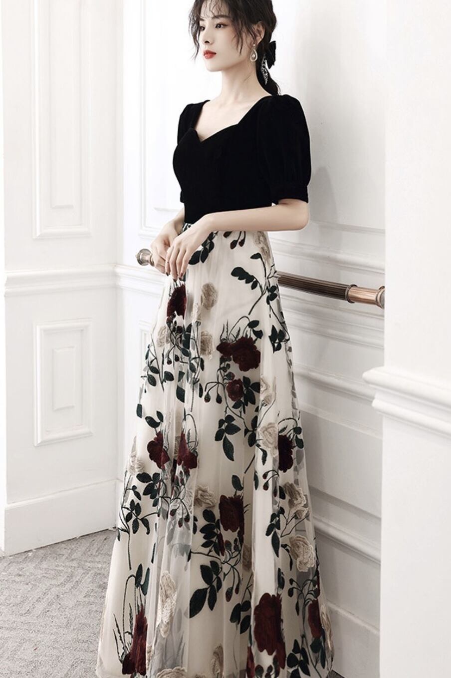 ドッキングドレス ロングワンピース パーティー 韓国 [gg-1079]