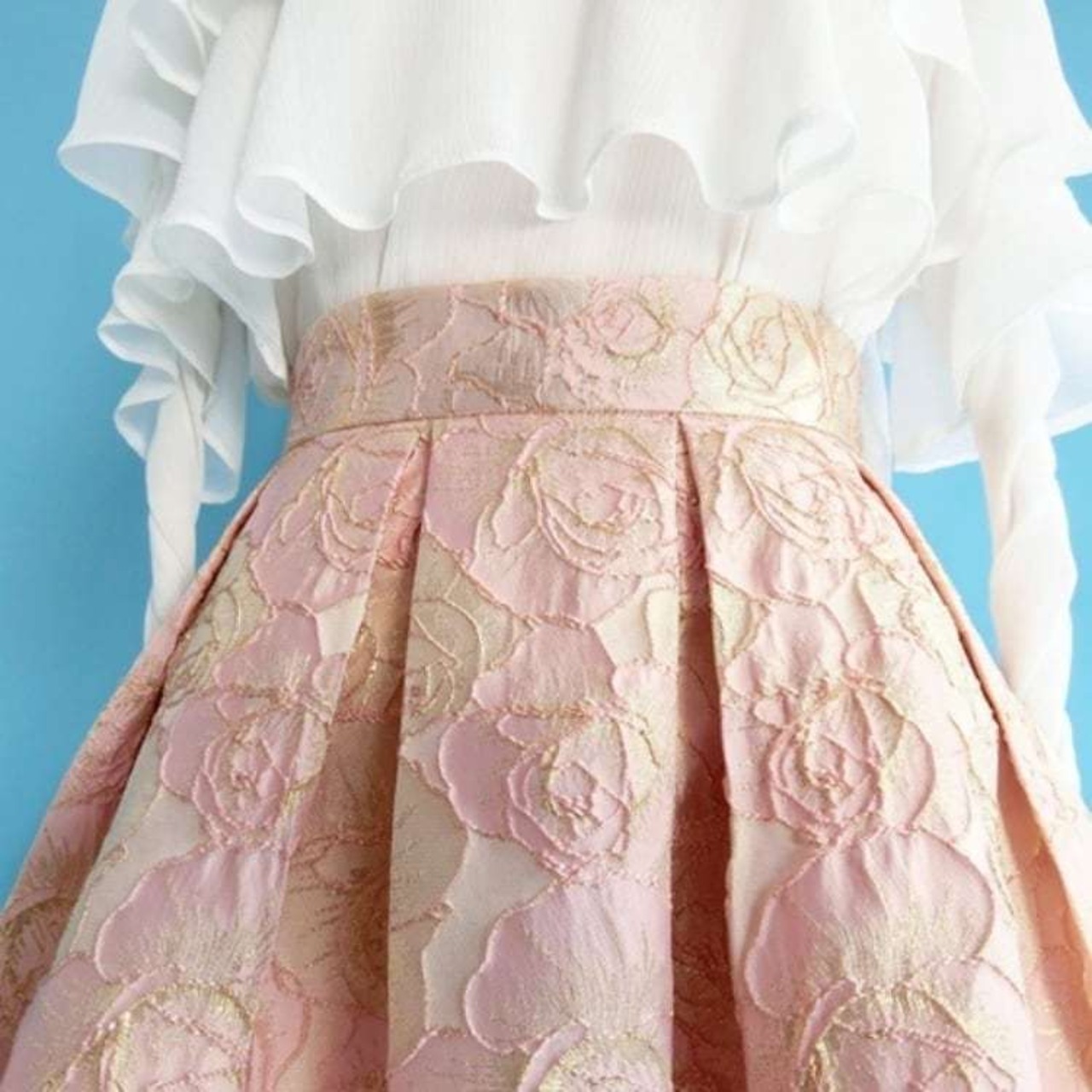 ローズ 刺繍 ベビーピンク スカート フレア ミモレ丈 [gg-1101]