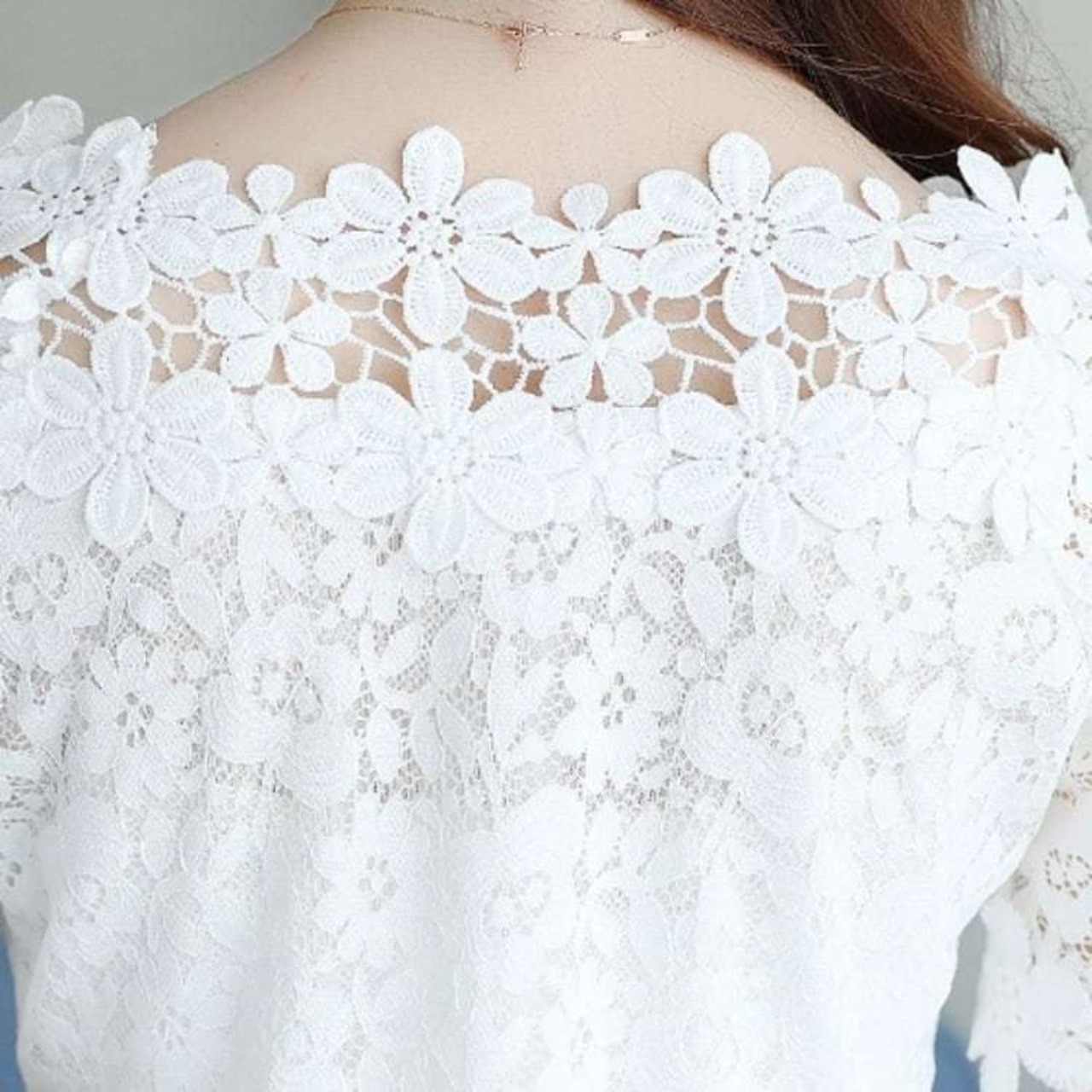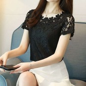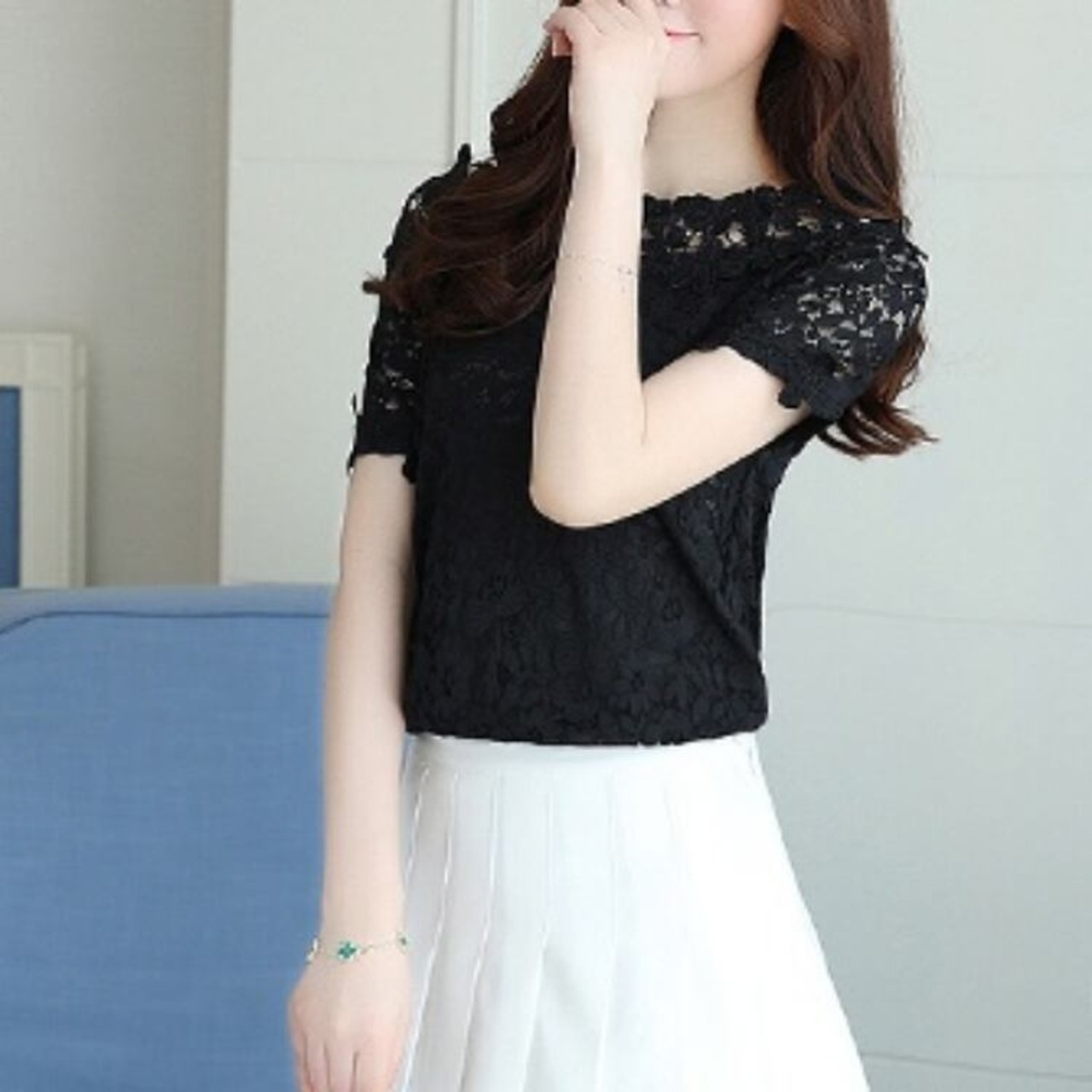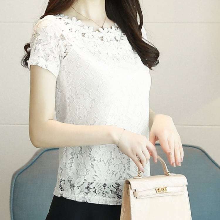 フラワー ネック レース ハーフ スリーブ ブラウス [gg-1119]