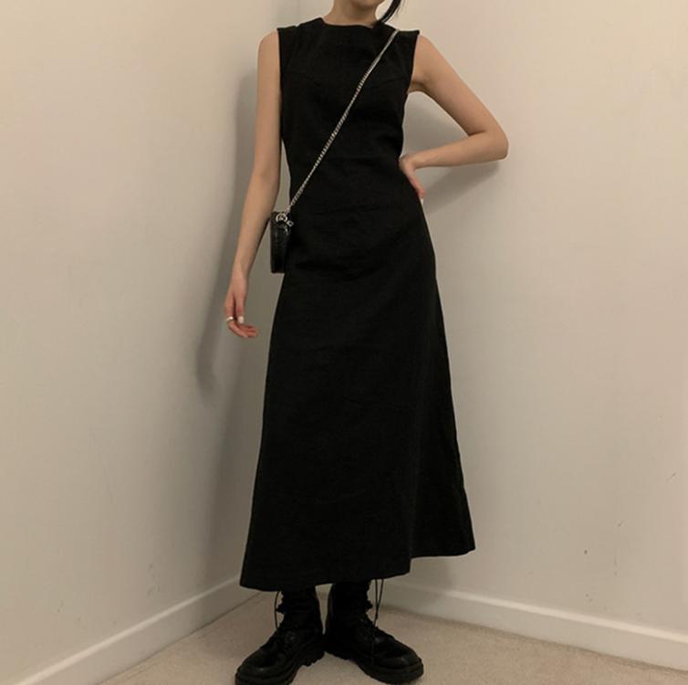 ロング ワンピース ノースリーブ バックオープン [gg-1121]