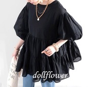 ティアード フリル ブラウス トップス 韓国 7分 [gg-1125]