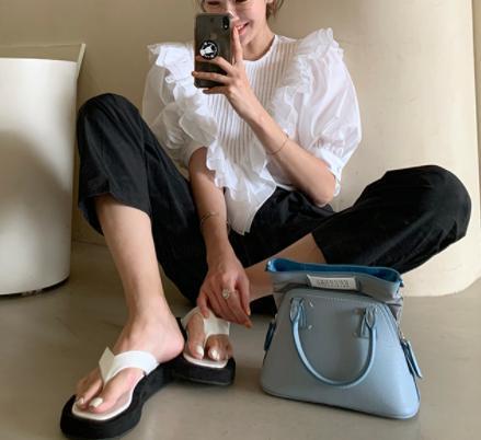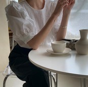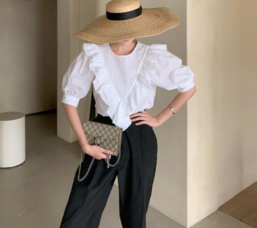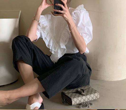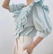 Vデザイン フリル ブラウス 半袖 パフ スリーブ [gg-1130]