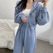 韓国 ショート丈 パーカー フード付き パンツ セットアップ [gg-1133]