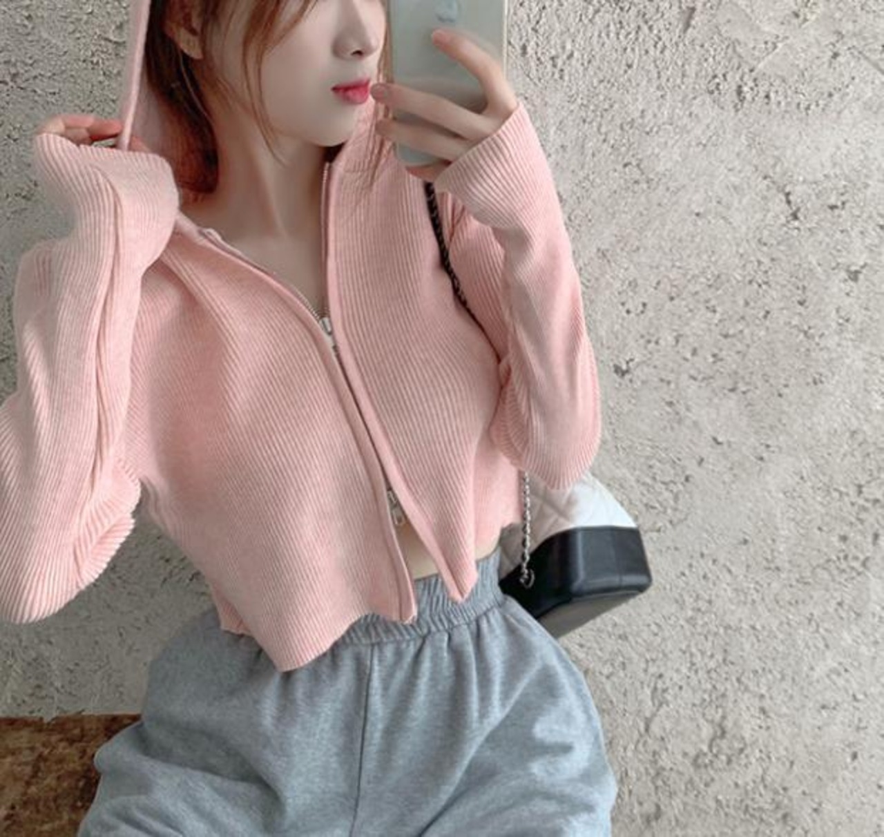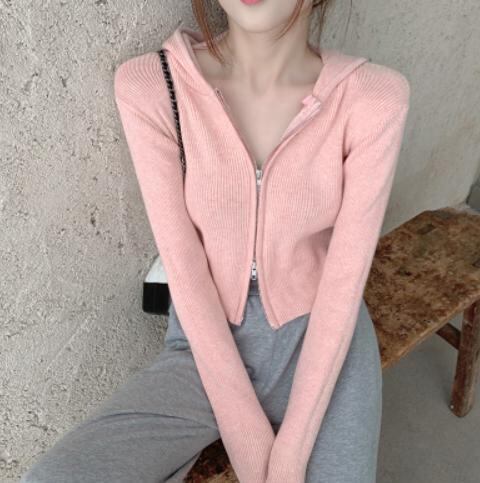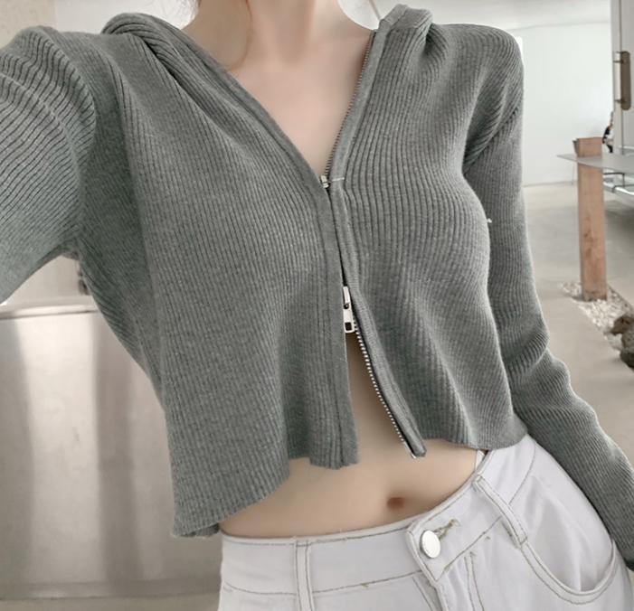 ニット パーカー リブ カジュアル フード付 トップス [gg-1136]
