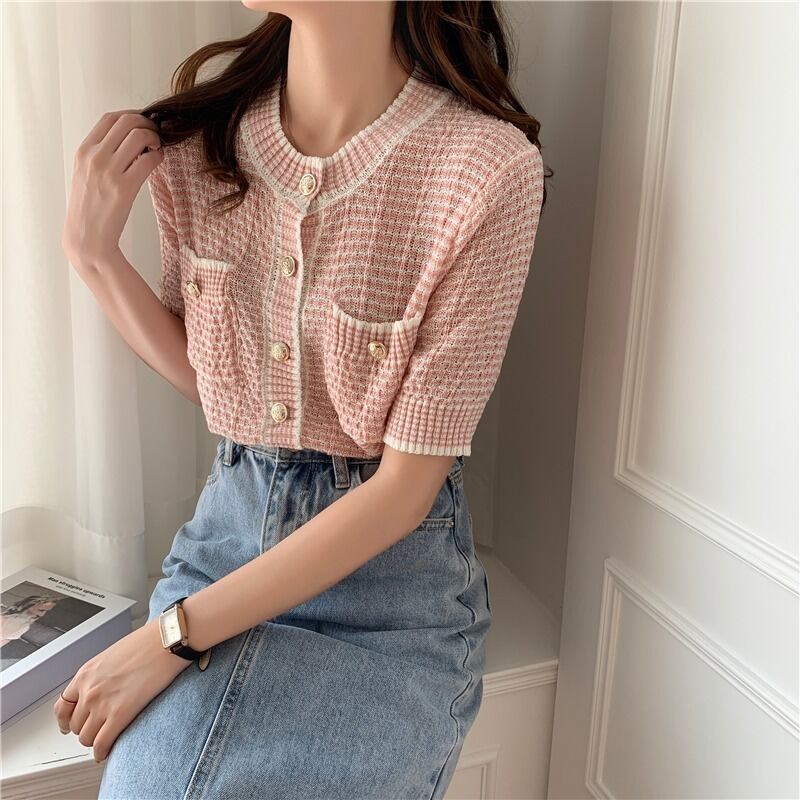 カーディガン ツイード調 金ボタン 上品 ジャケット [gg-1137]