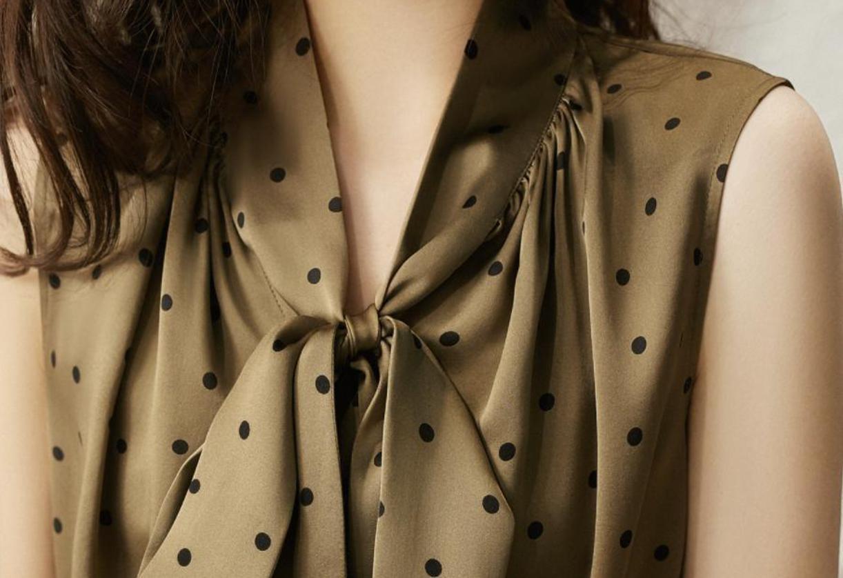水玉模様が可愛いブラウスです♪タイリボンもトレンド感あり♪
