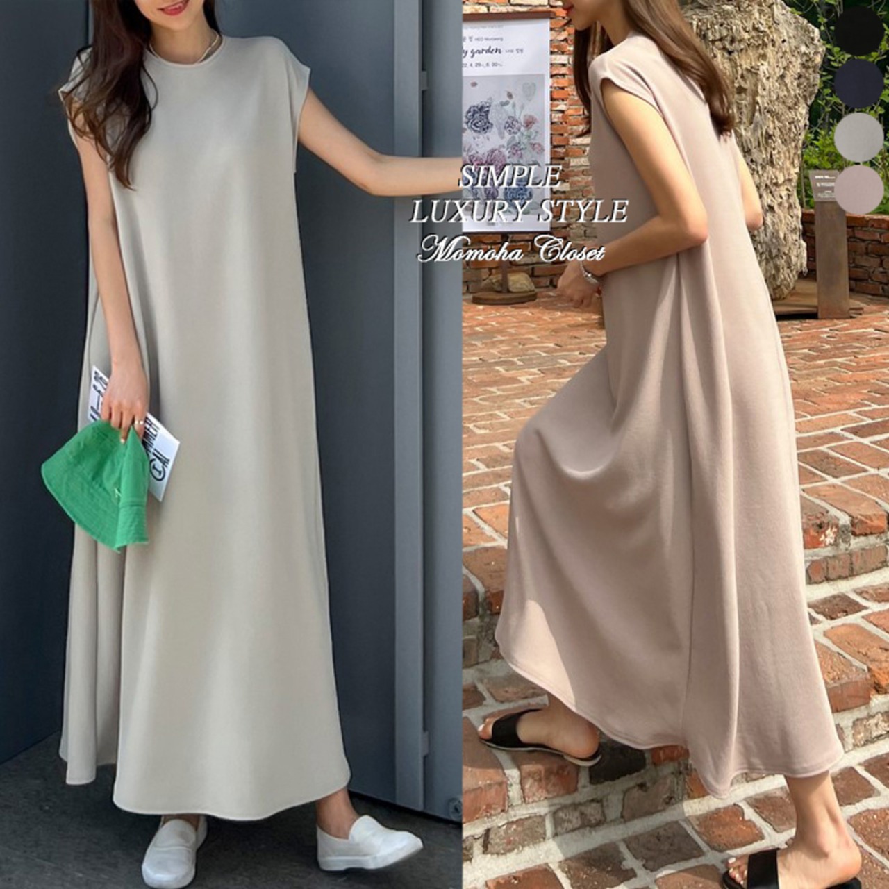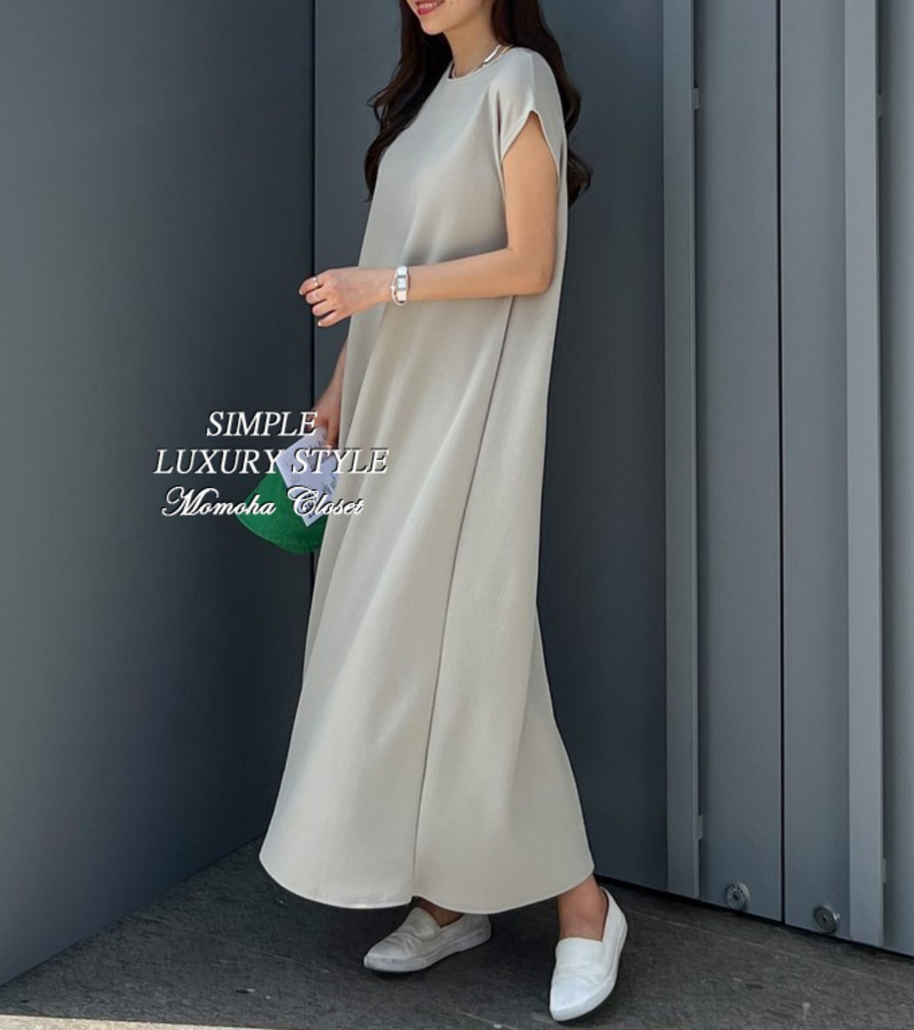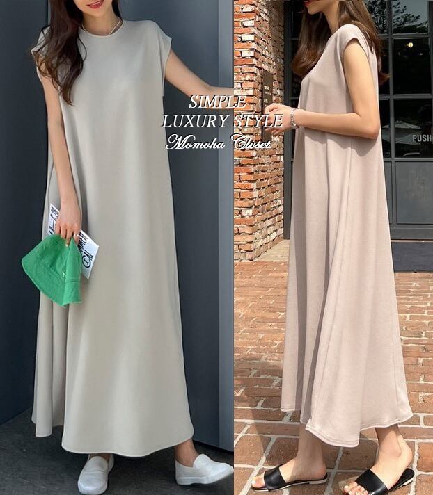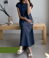 ノースリーブ リンクルフリー マキシ ワンピース [gg-1141]
