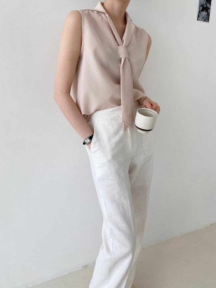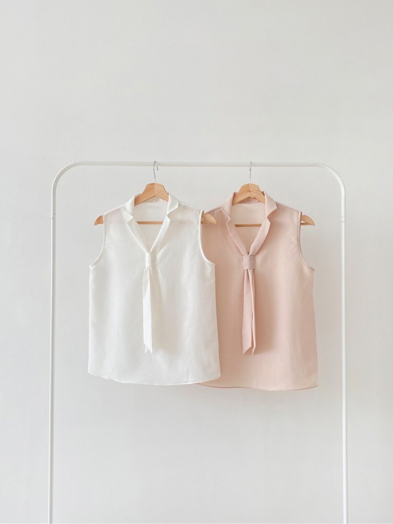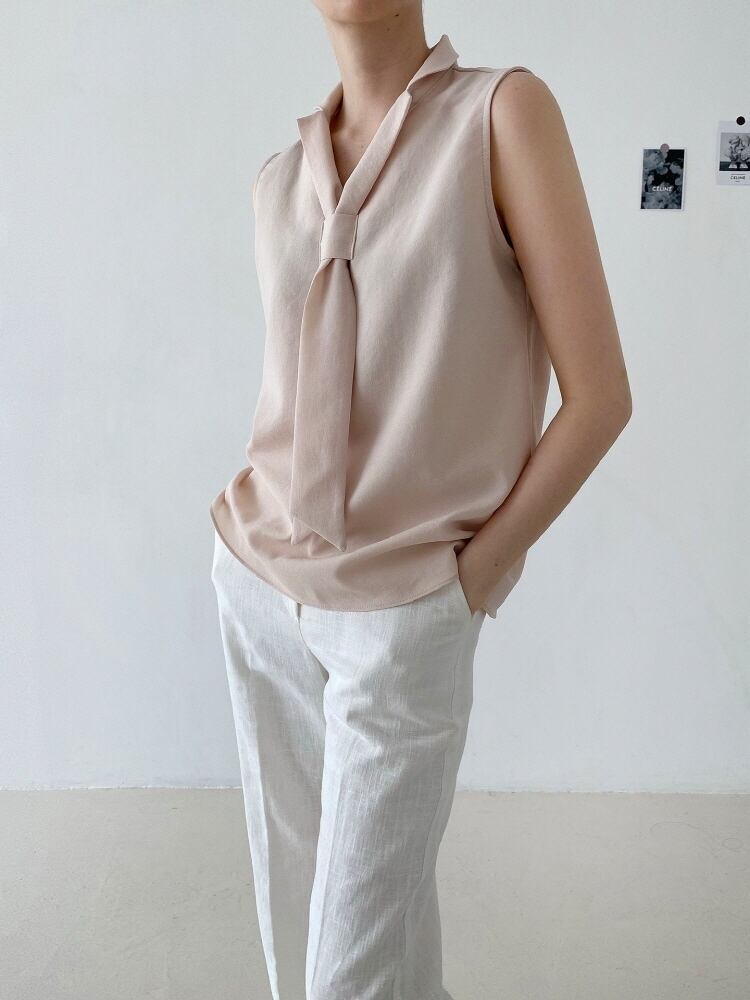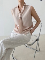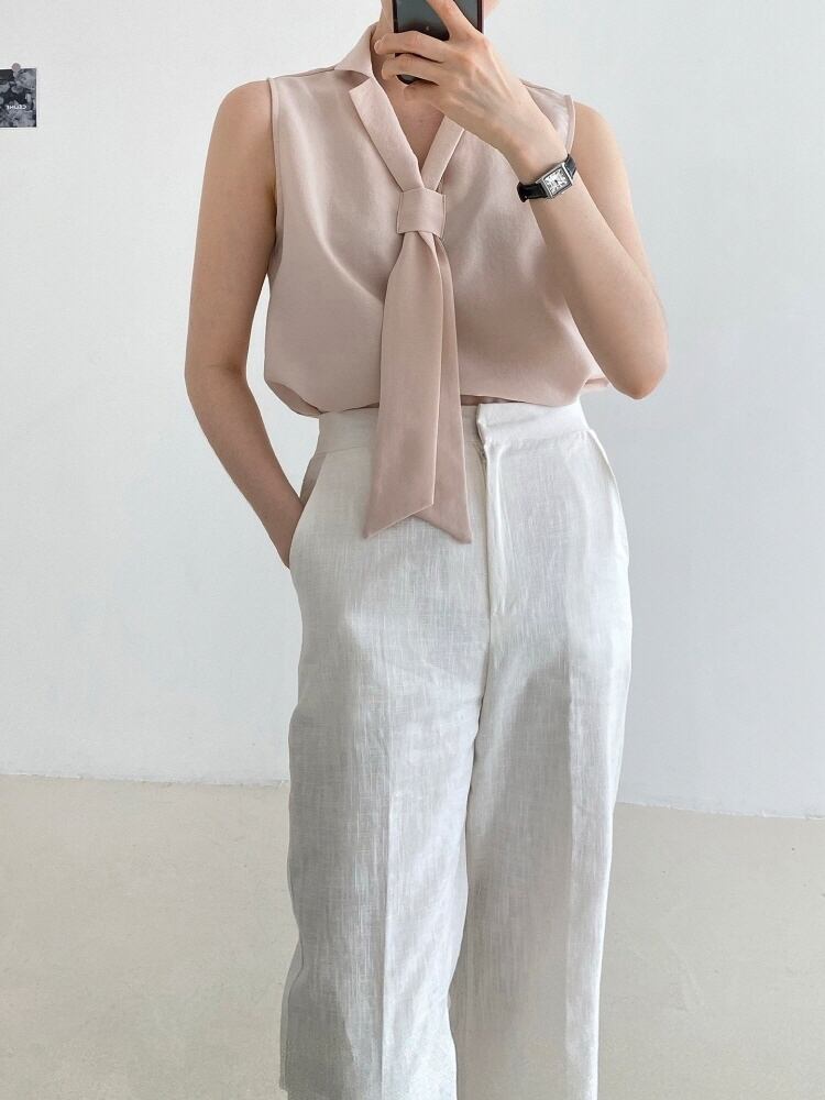 ノースリーブ 襟カラー ボウタイ ブラウス [gg-1148]