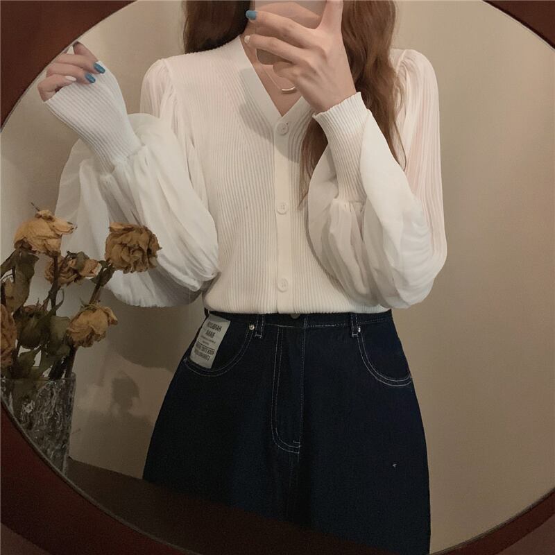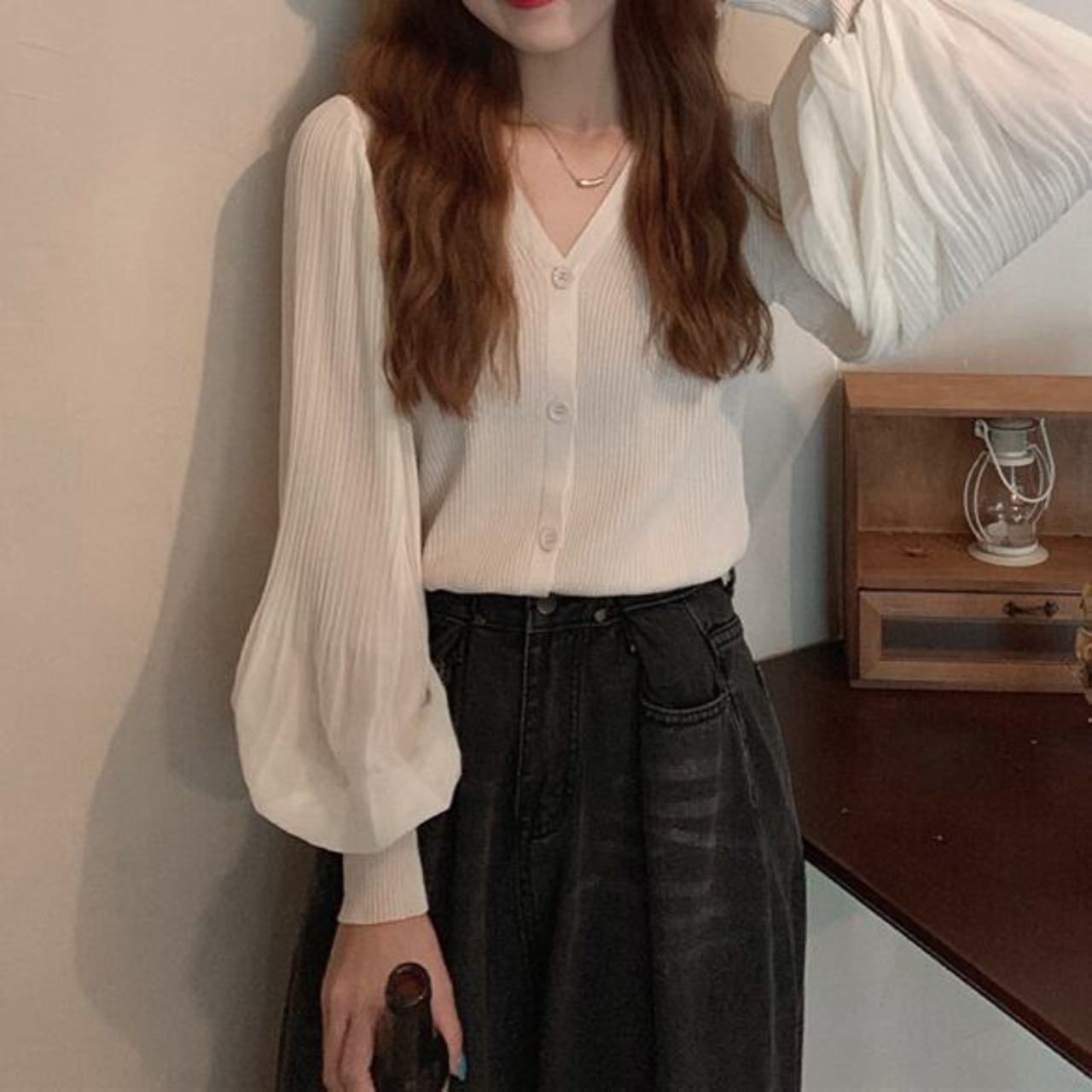 ランタンスリーブ カーディガン Vネック カジュアル [gg-1163]