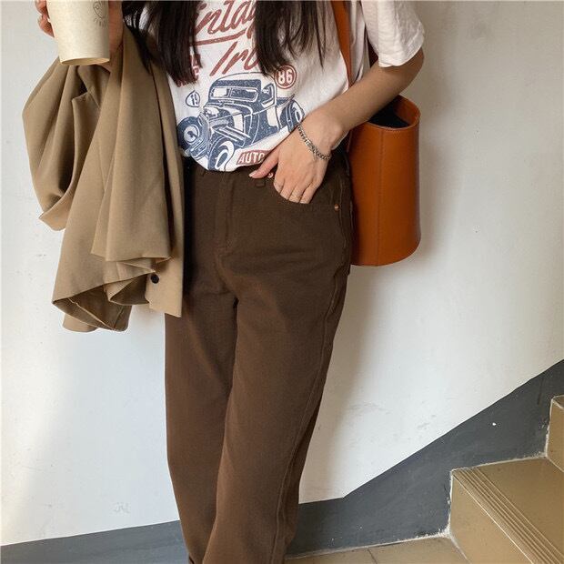 シンプル デニム ハイウエスト カジュアル 韓国 ジーンズ [gg-1175]