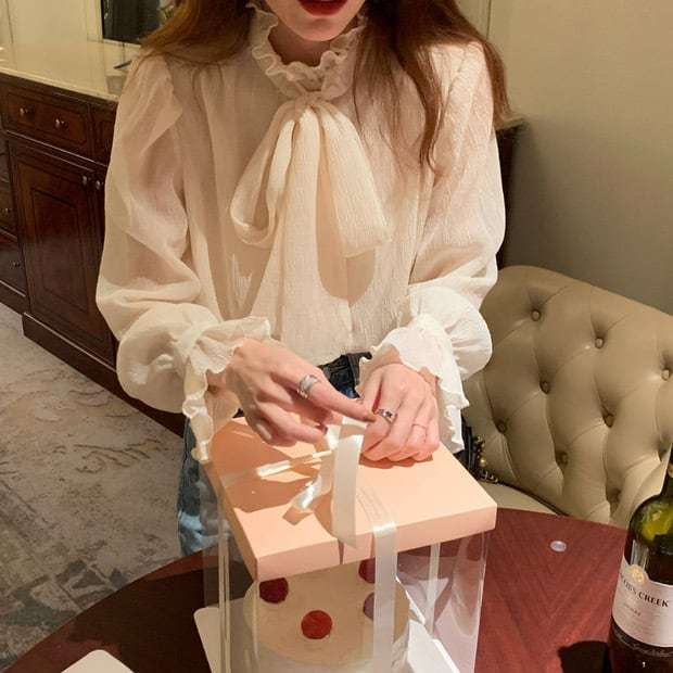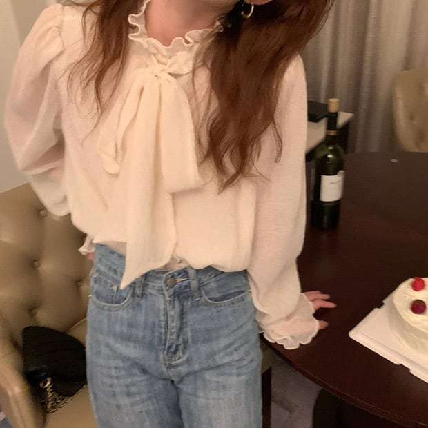 ボウタイ シアー ブラウス 長袖 ランタンスリーブ [gg-1177]