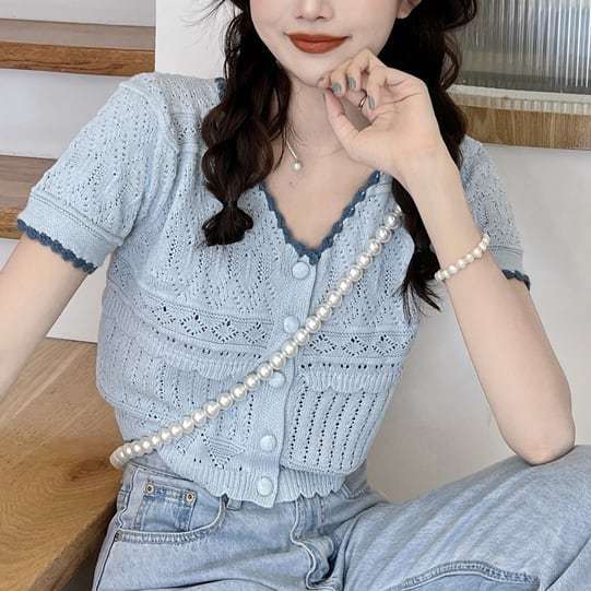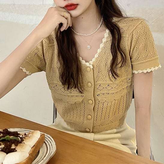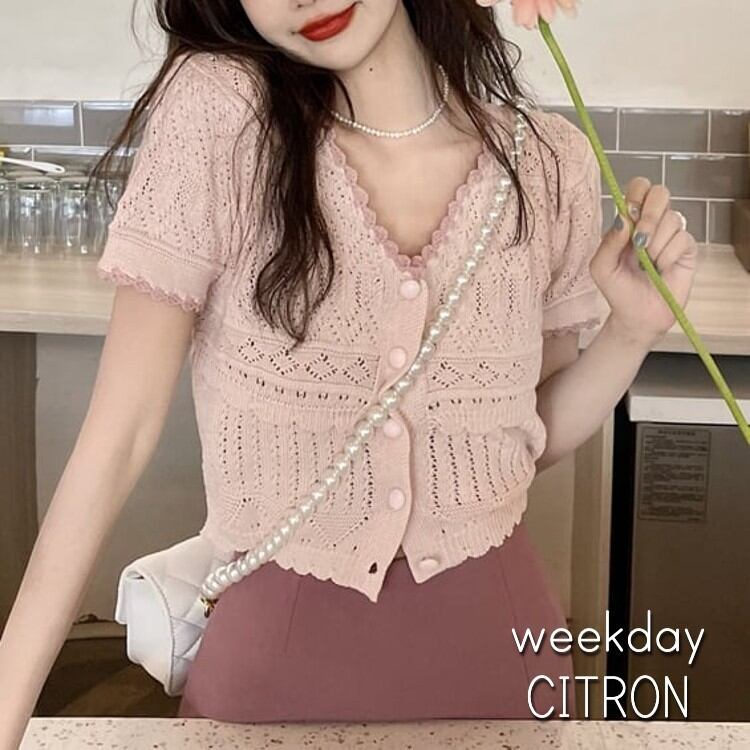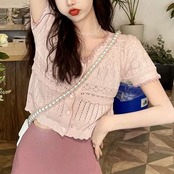 サマー ニット カーディガン Vネック 韓国 トップス [gg-1179]