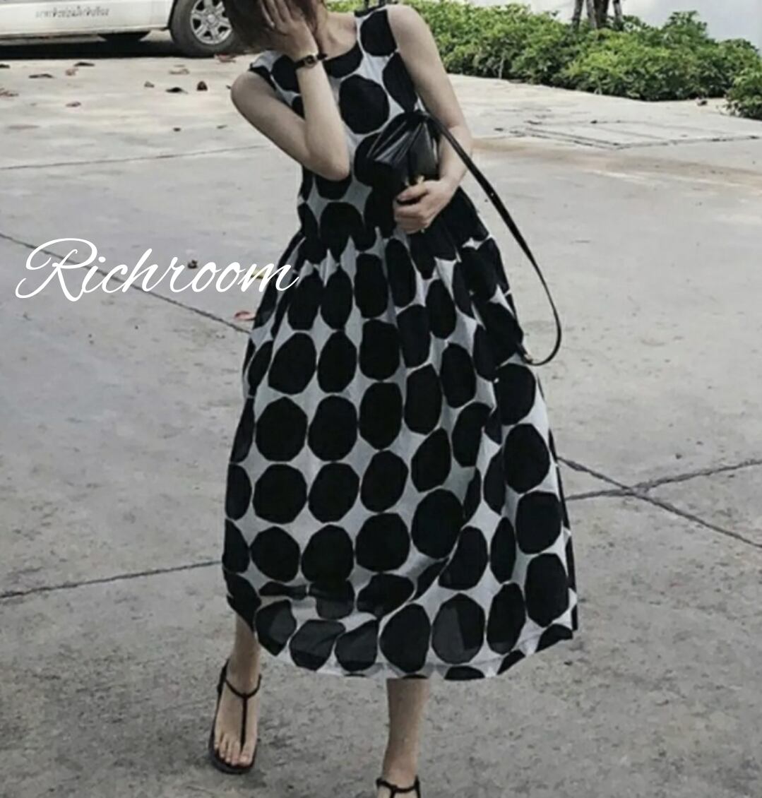 ワンピース ノースリーブ ロング丈 ハイウエスト [gg-1188]