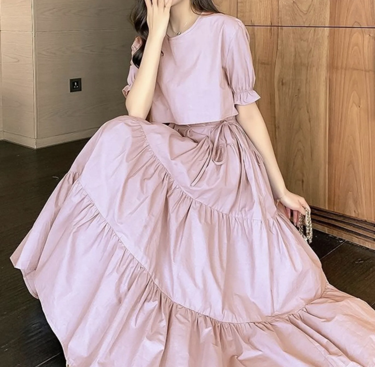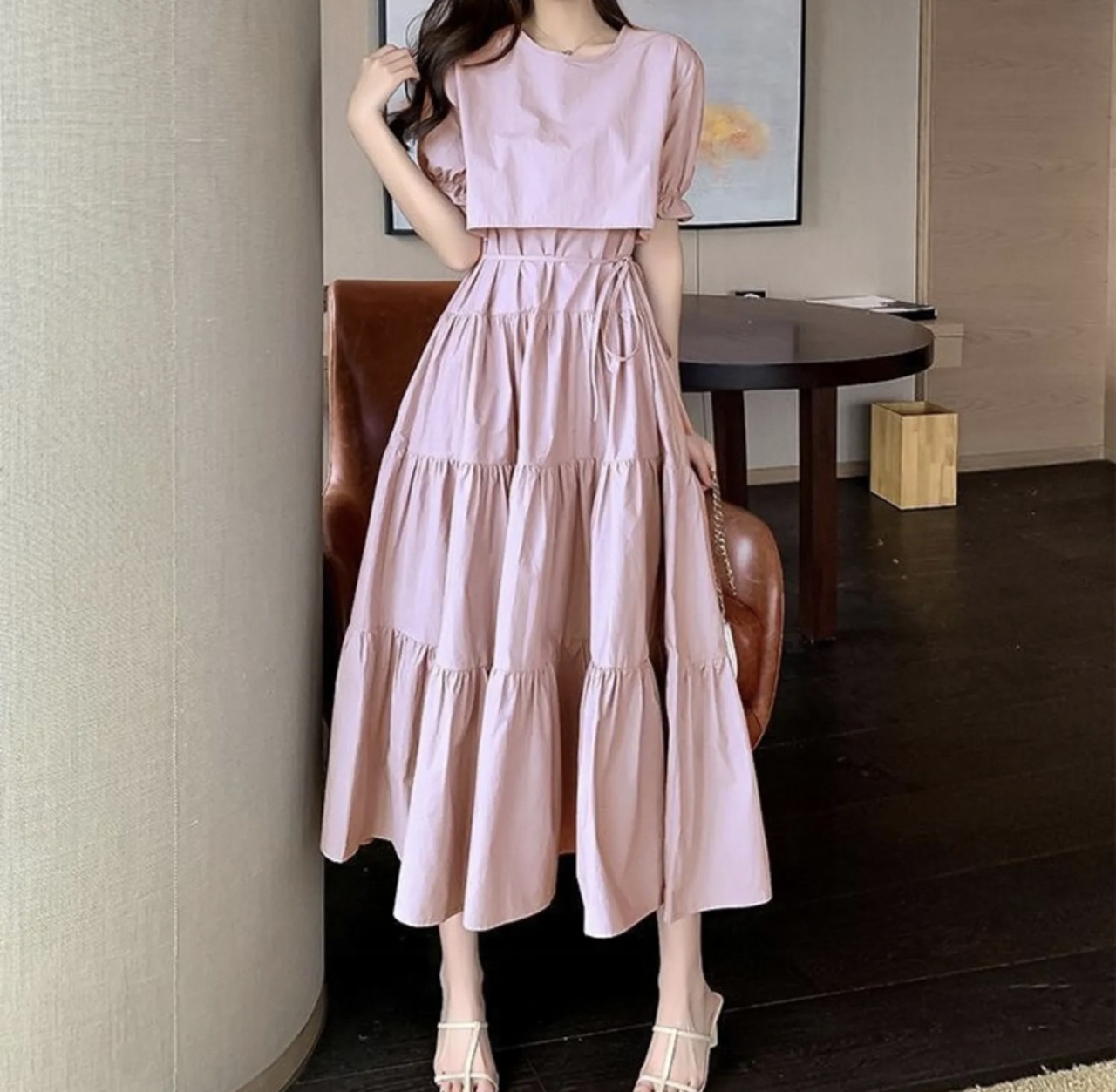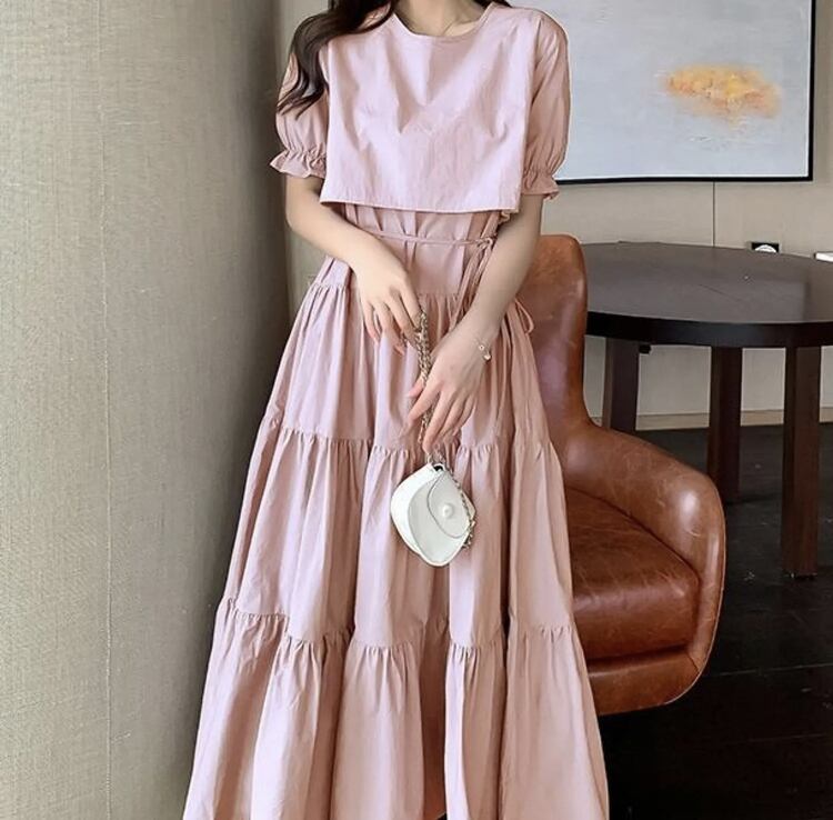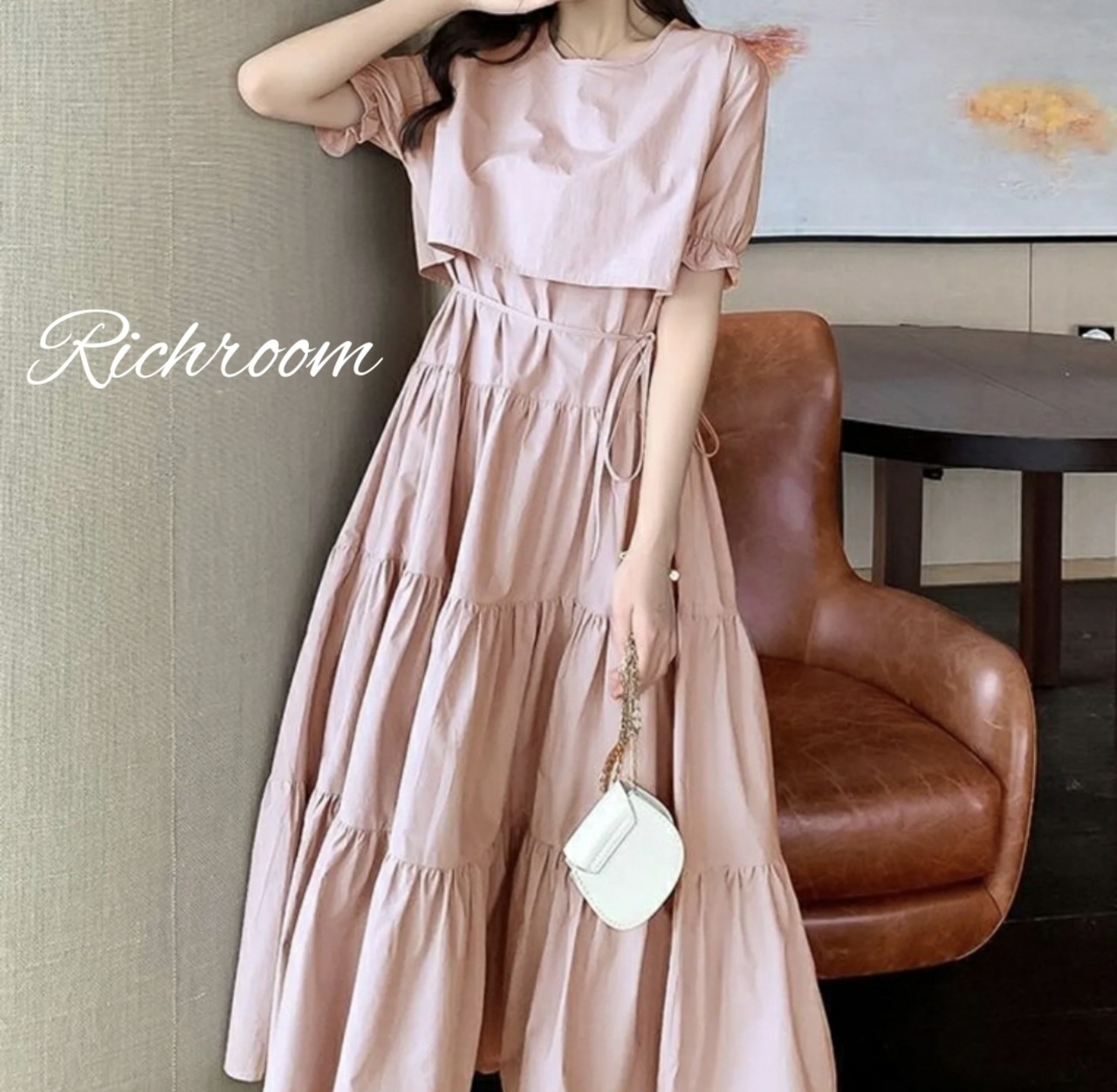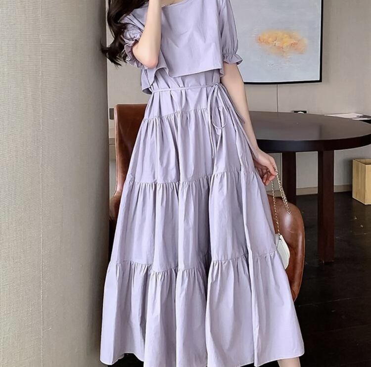 ワンピース ハイウエスト ミモレ丈 半袖 フェアリー [gg-1212]