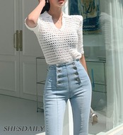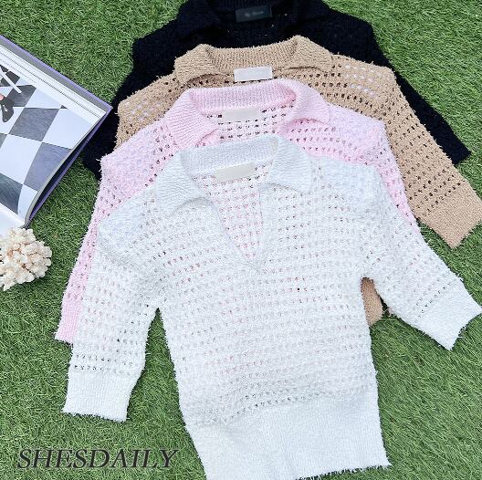 透かし編み カラー ニット Tシャツ [gg-1255]
