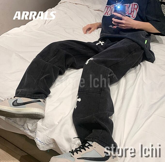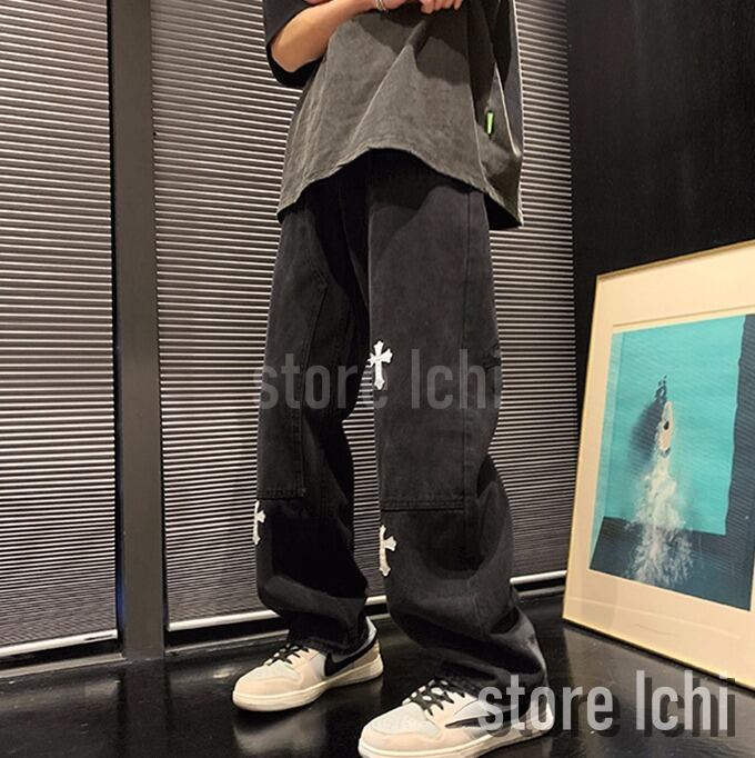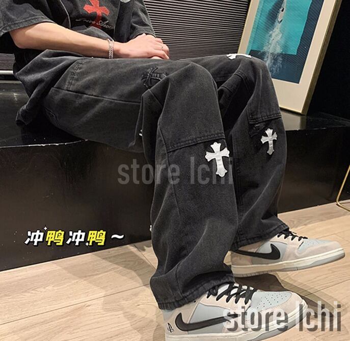 メンズ デニムパンツ 十字架 クロス ワッペン ボトムス [gg-1263]