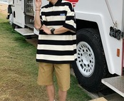 メンズ ボーダー柄Tシャツ 半袖 コントラスト [gg-1283]