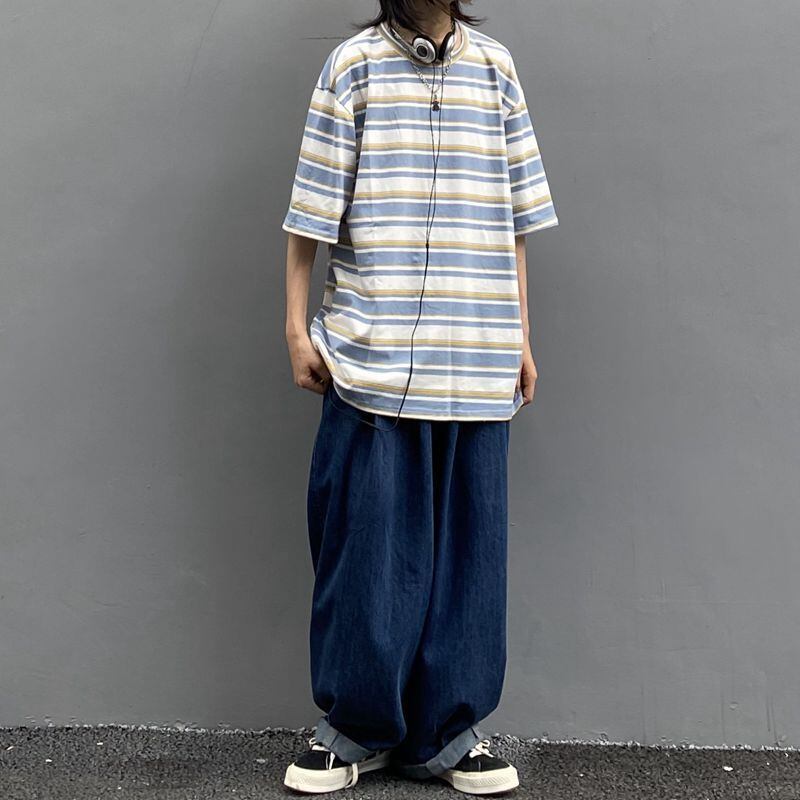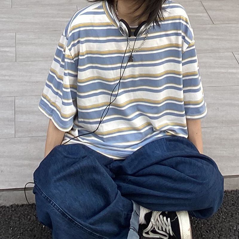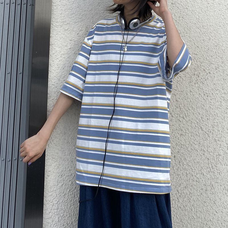 ユニセックス ルーズ ボーダー Tシャツ [gg-1292]