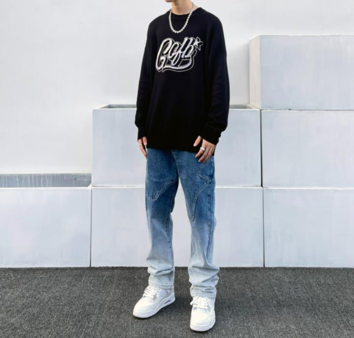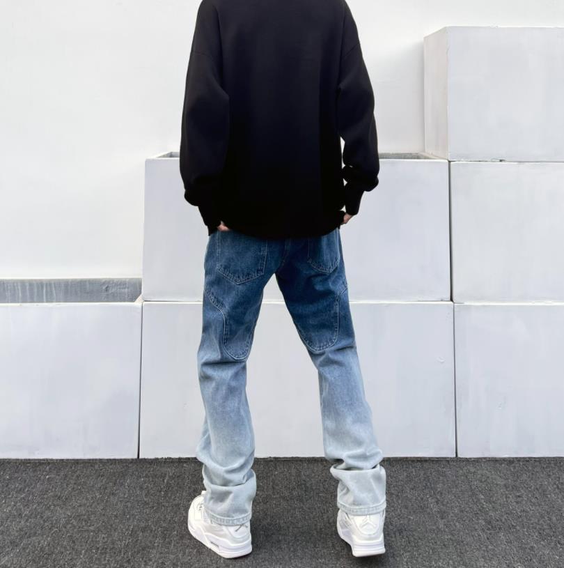ストリート カジュアル グラデーション ダメージ加工 ワイドパンツ [gg-1296]