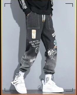 デニムパンツ ペイント ジーンズ ストリート ウエストゴム [gg-1299]