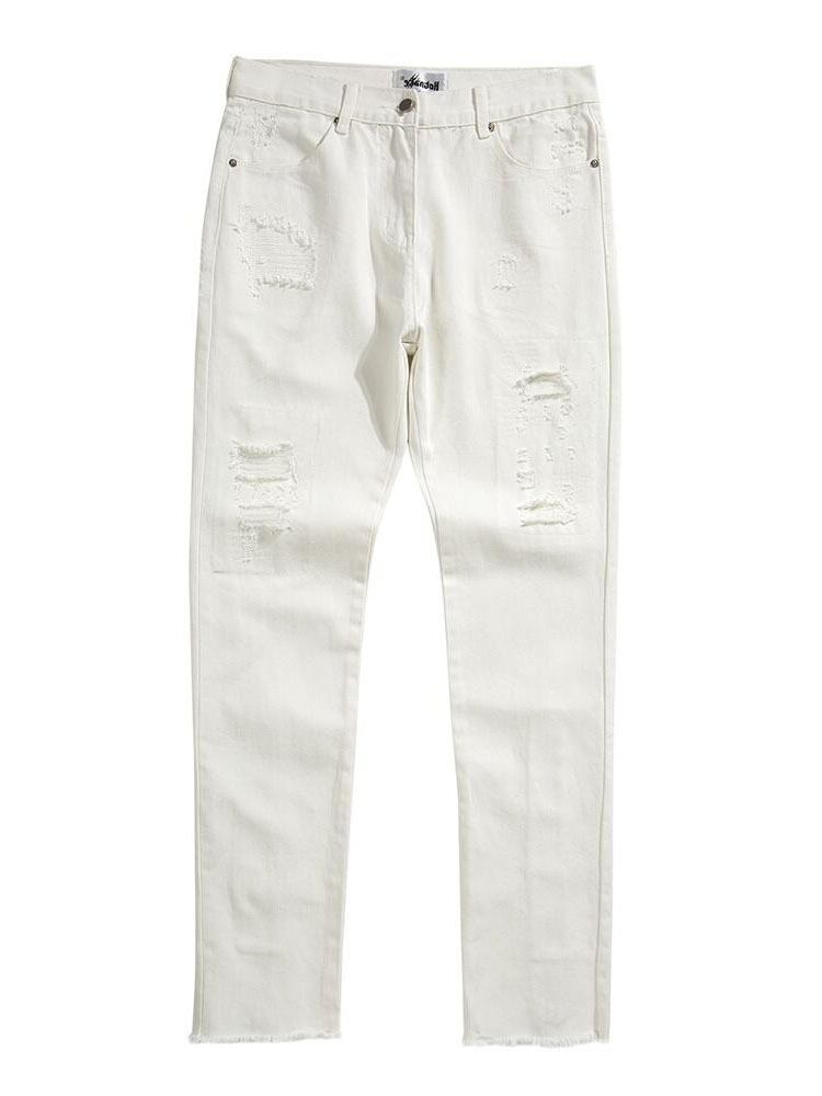 ストリート デニムパンツ ダメージ ジッパー カジュアル [gg-1300]