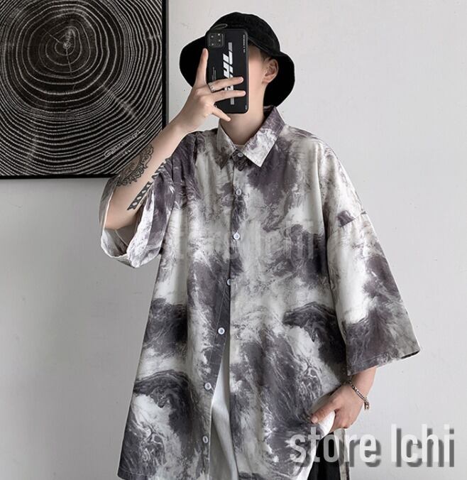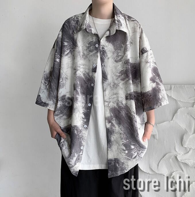 メンズ タイダイ柄シャツ 総柄 半袖シャツ フルプリント [gg-1303]