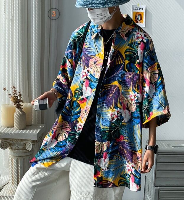 メンズ アロハシャツ トロピカル柄 半袖シャツ 総柄シャツ [gg-1314]
