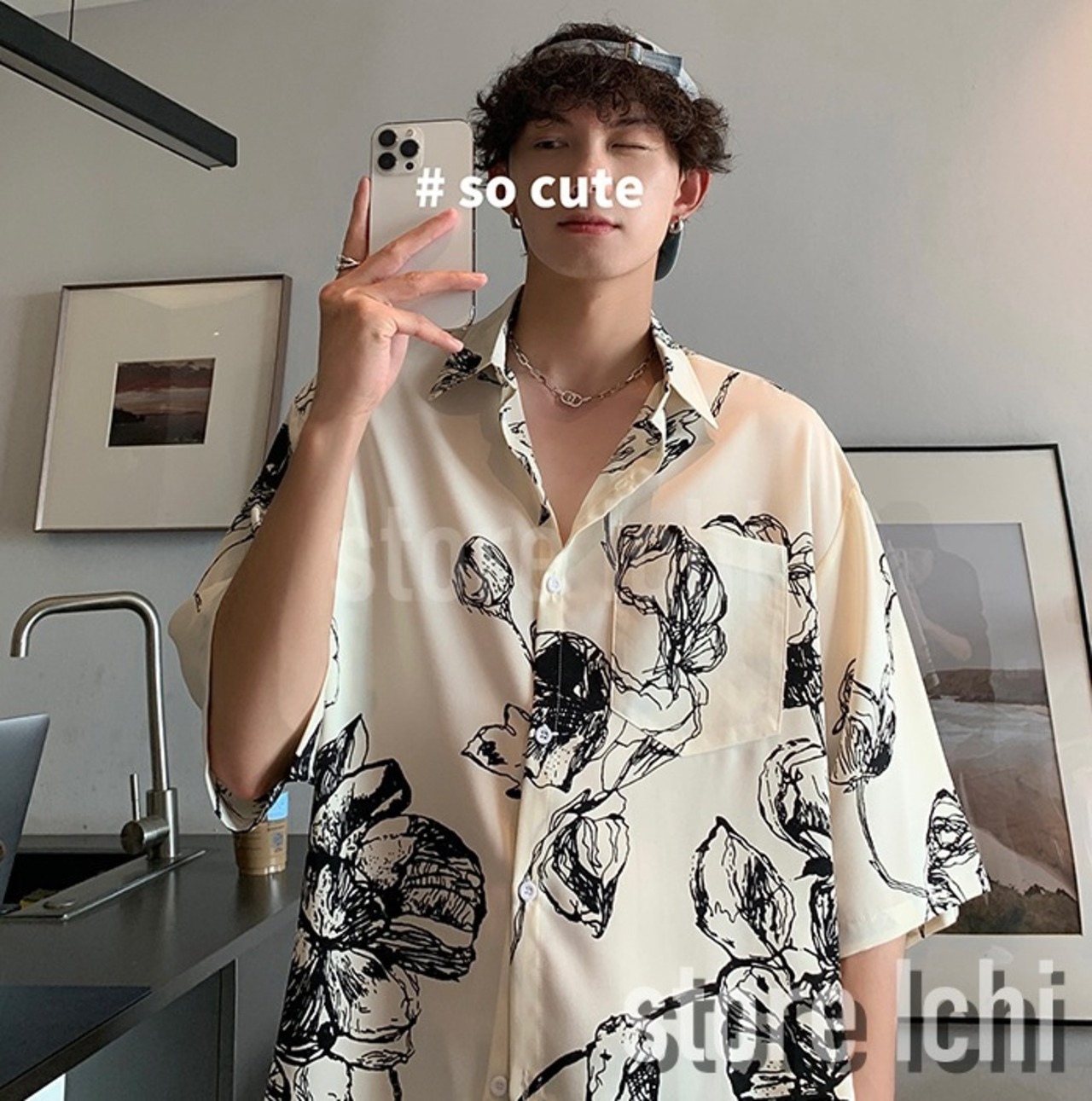 メンズ 総柄シャツ フルプリント 半袖シャツ 花柄シャツ [gg-1315]