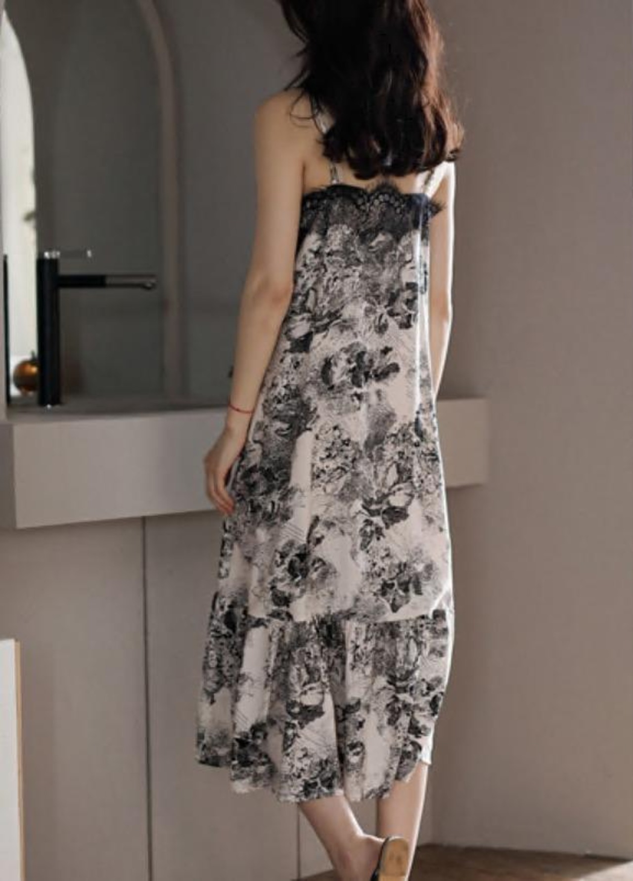 韓国 パジャマ 花柄 レース ネグリジェ キャミワンピ [gg-1321]