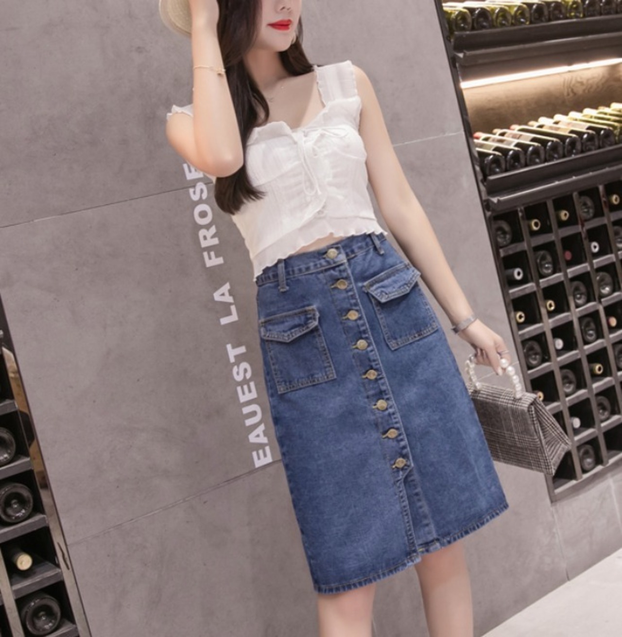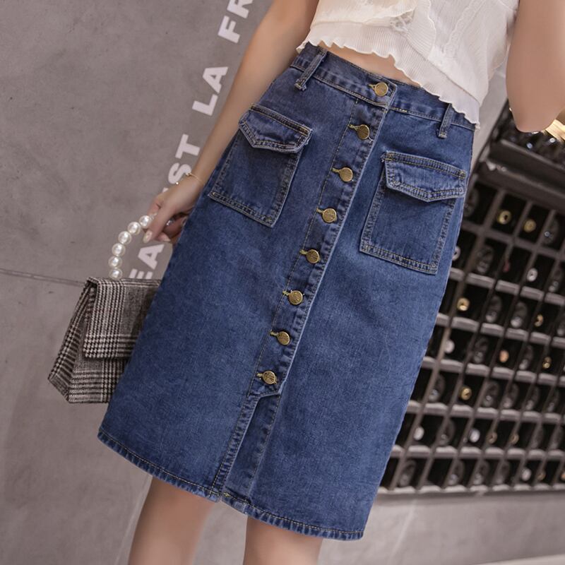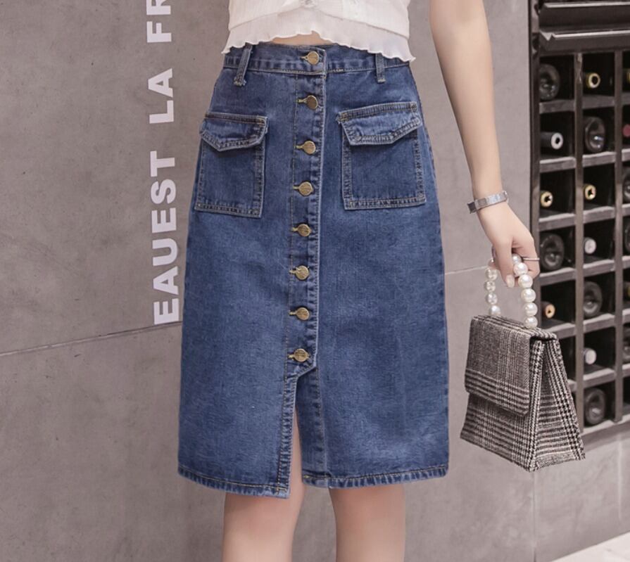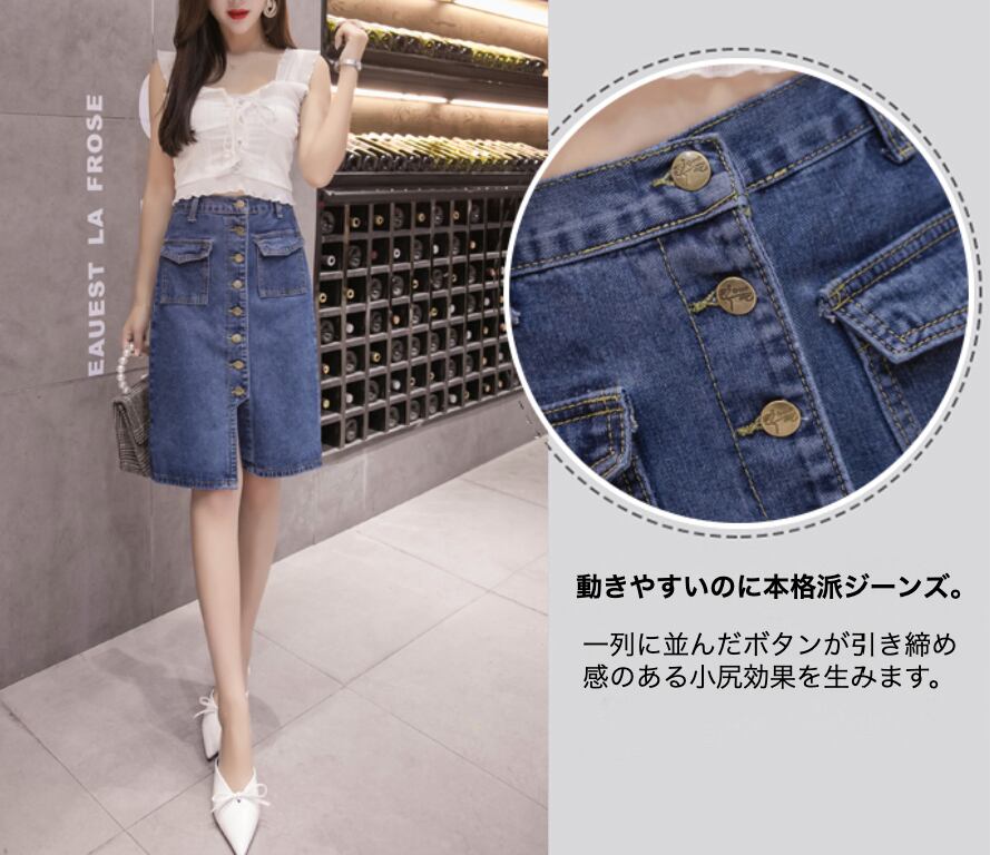 韓国系 ひざ丈 タイト デニムスカート [gg-1324]