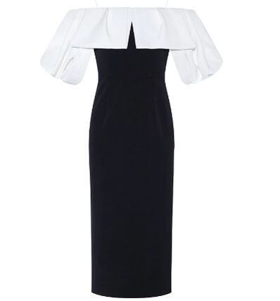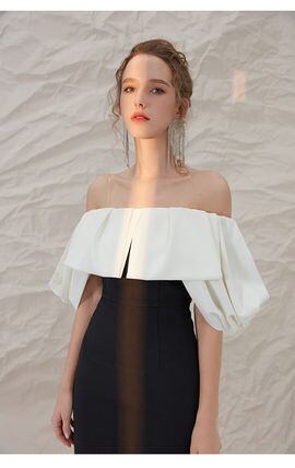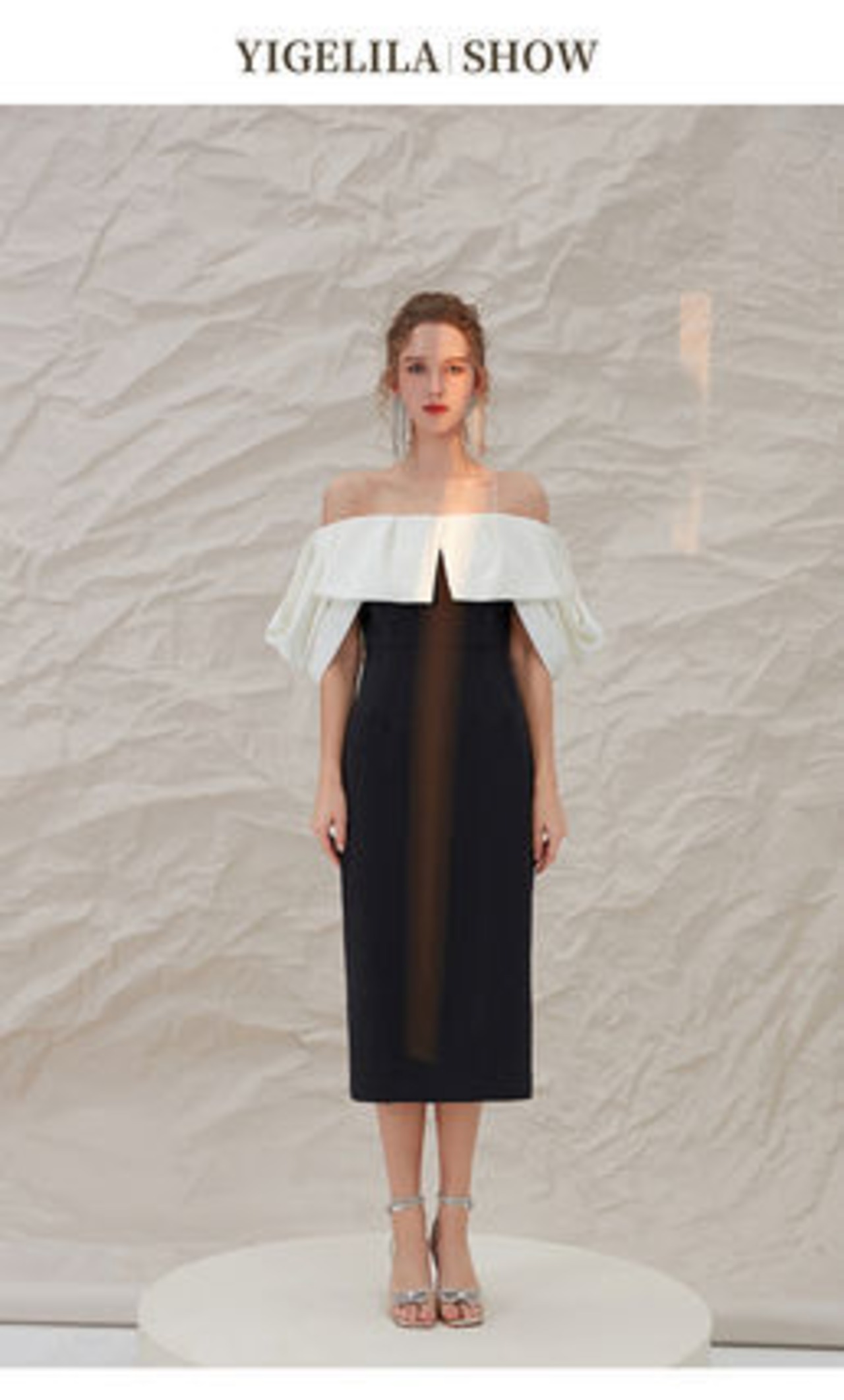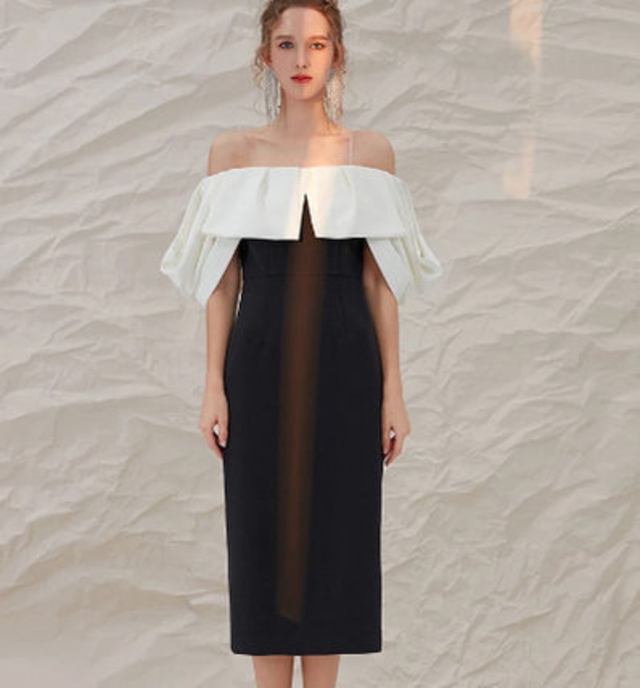 韓国 ワンピース ドレス オフショルダー フリル バイカラー [gg-1365]