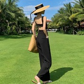 韓国 ハイウエスト オールインワン 背中あき スクエアネック [gg-1368]