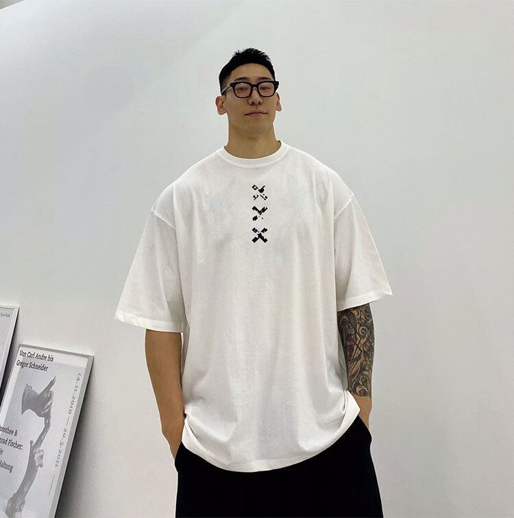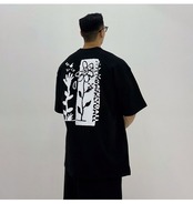 韓国 バックプリント 花柄 Tシャツ ルーズフィット 全2色 [gg-1374]
