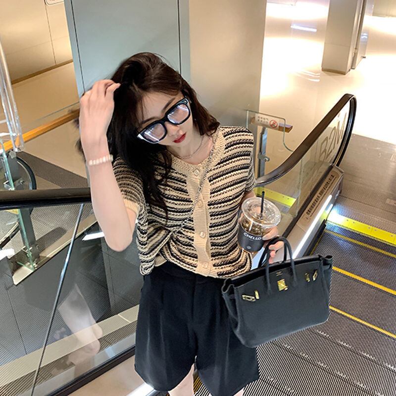 韓国 サマーニット カーディガン カジュアル ボーダー [gg-1375]