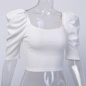 韓国 パワーショルダー スクエアネック ブラウス 2カラー [gg-1380]
